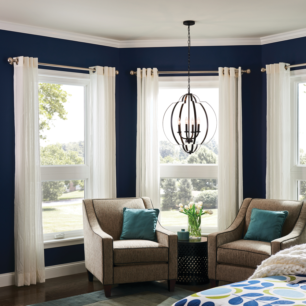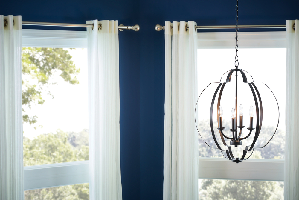 Designed with an intertwined spherical shape and geometrical details, the Voleta 4-light large foyer pendant with Black finish makes a great statement piece, adding visual interest to any room.