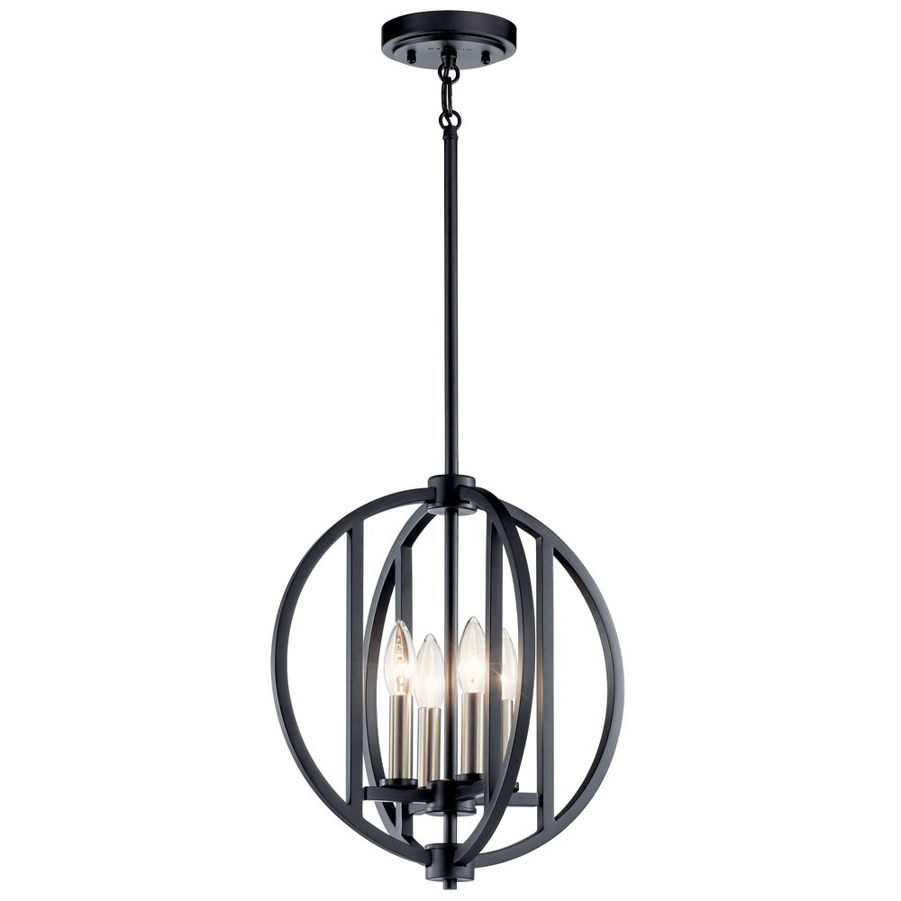 Orb style, a two-tone finish and stacked luminaires give this 4 light chandelier from the Samural family a style thatâ™s welcome in todayâ™s less-is-more designs. The ladder effect with the lights packs great illumination inside a smaller area.
