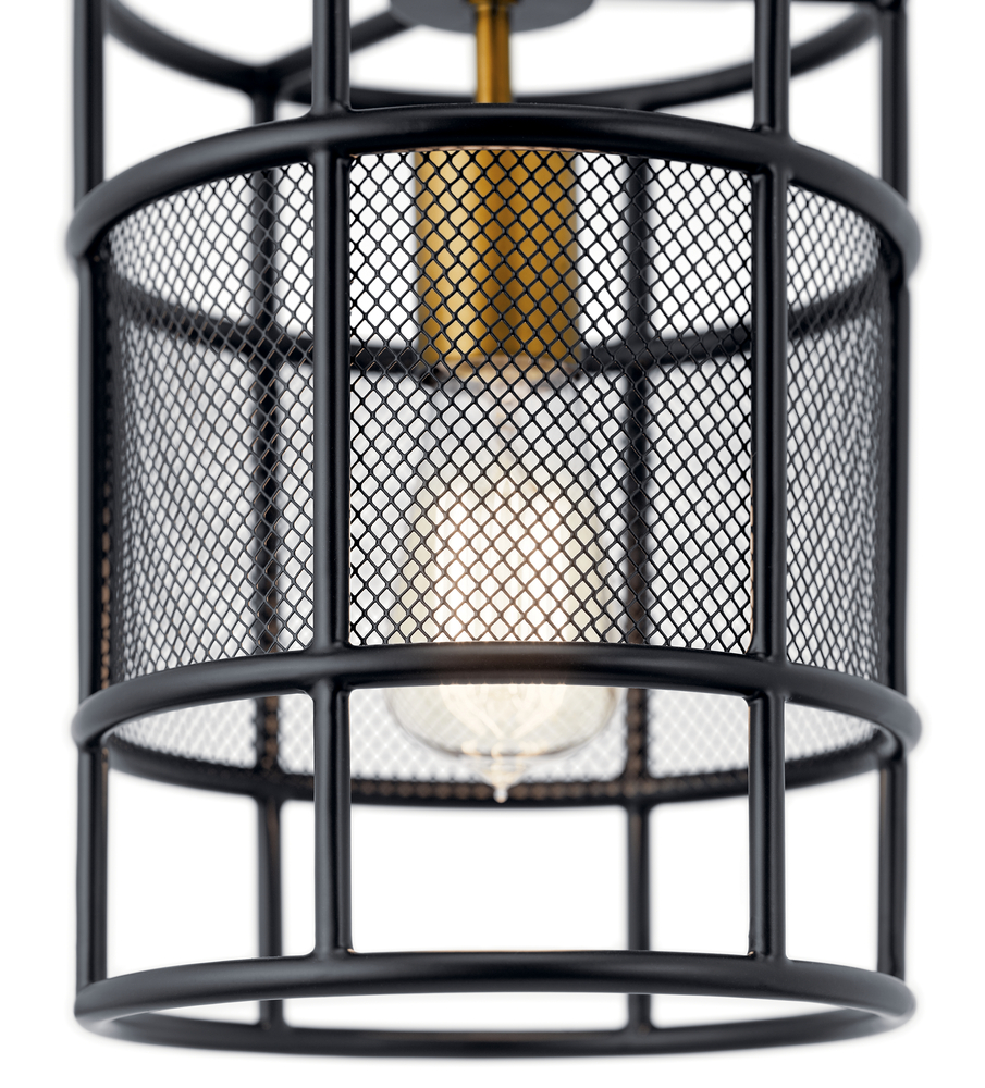 Two on-trend finishes deliver sleek industrial-era style on this Piston 1 light mini pendant. Natural Brass accents add the shine, while a black mesh cage forms the structure.
