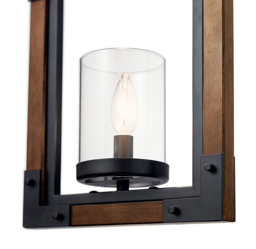Warm and welcoming tones give the Marimount 1 light mini pendant a vintage feel. The wood-look structure offers weathered style in a rich Auburn finish, framed in Black metal. A clear glass shade assure the light shines through.