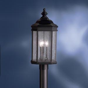 The Kirkwood Collection looks to add a touch of elegance to your home with a line of lighting that embodies classic design for those who only want the finest. Using a high quality fit and finish, the Kirkwood Collection employs our basic Black finish that not only looks fantastic now, but also will last for years to come. Seedy glass panels on each of the fixtures' sides allow for light to radiate from all angles, ensuring you the light you need. We think you'll agree that the Kirkwood is a collection you can't afford to miss. This 23½" high by 10" sq., 3-light post lantern uses 60-watt (max.) bulbs, and is U.L. listed for wet location. Post Not Included.