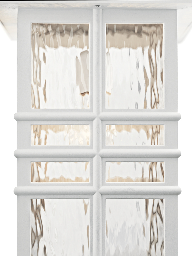The Beacon Square 17.5" 1 light outdoor wall light features a classic look with its White finish and clear hammered glass. Crafted from Kichler's Climates materials, each fixture is designed to withstand harsh outdoor elements, like saltwater spray and UV rays, for a beautiful and long lasting White finish. The Beacon Square outdoor wall light is perfect in several aesthetic environments, including arts and crafts and mission.