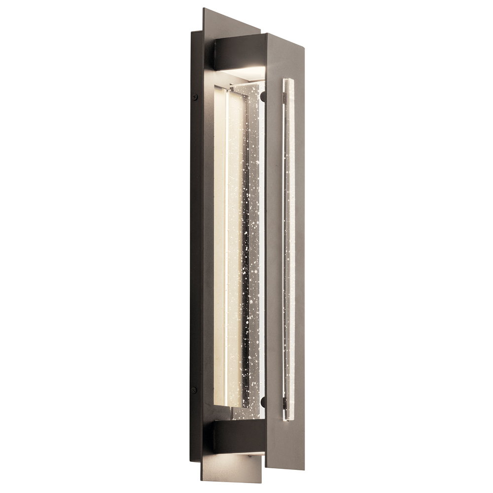 The River Path 23" outdoor LED wall light features a contemporary look with its clear seeded glass and Olde Bronze® finish. The River Path wall light works in several aesthetic environments, including modern and transitional.