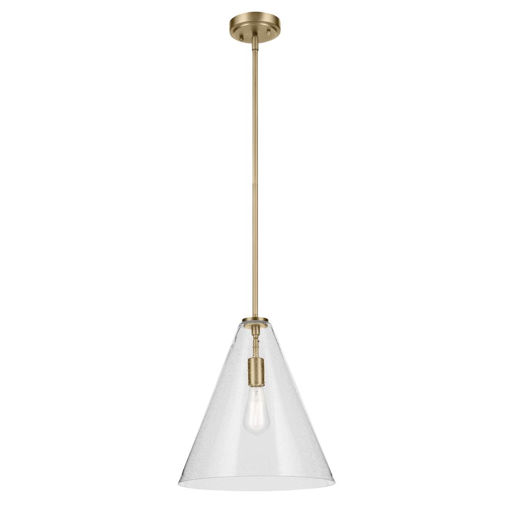 A modern style with minimal detailing, the Everly 1-light pendant easily elevates the style of soft modern environments. This elegant pendant offers a conical form and contemporary, clear seeded glass that creates a soft, ambient glow, adding warmth as it shines. As beautiful as it is versatile, adjust the hanging height to meet the needs of your space
