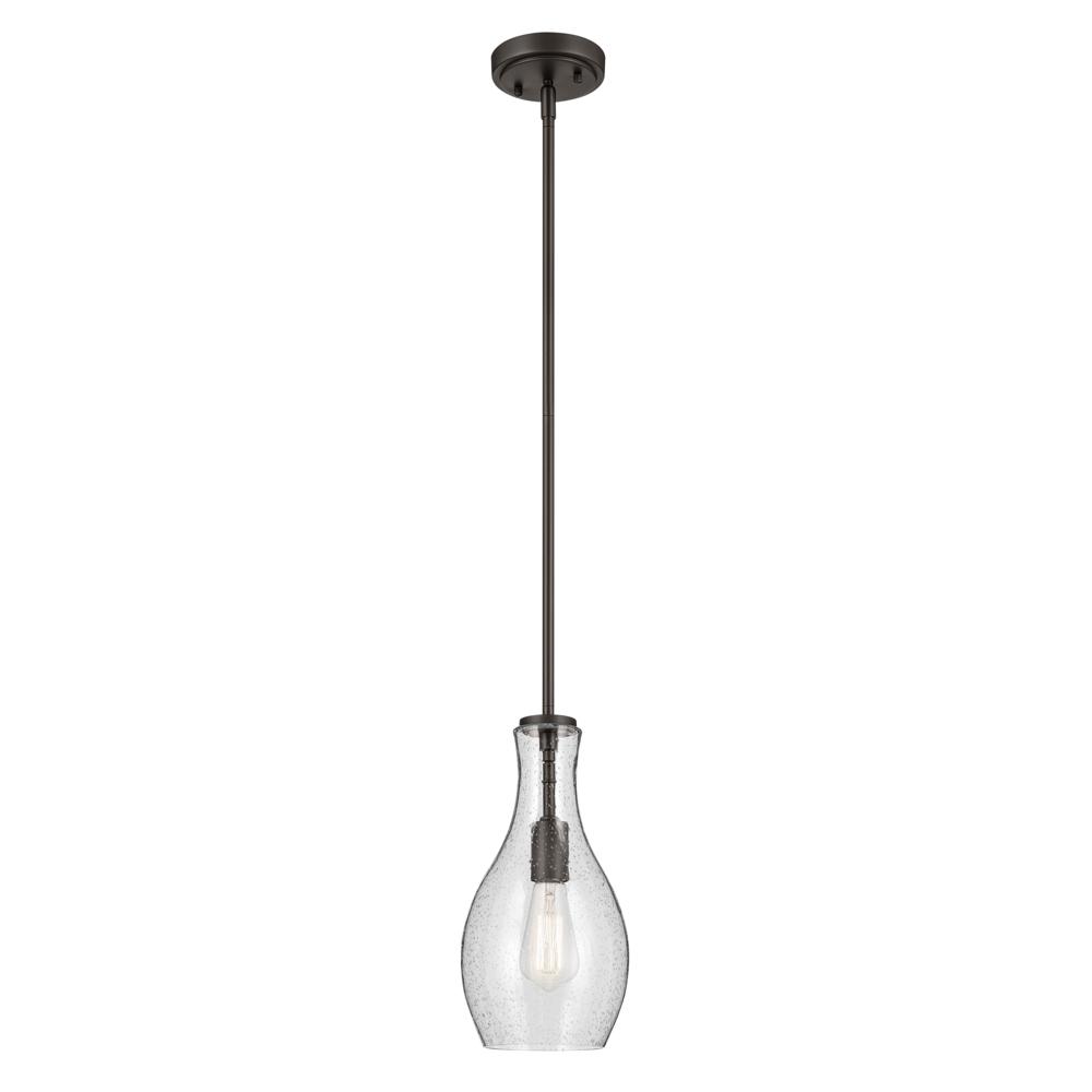A modern style with minimal detailing, the Everly 1-light pendant easily elevates the style of soft modern environments. This elegant pendant offers a soft, curvilinear form and contemporary, clear seeded glass silhouette that provides ambient lighting to the entire room. As beautiful as it is versatile, adjust the hanging height to meet the needs of your space.
