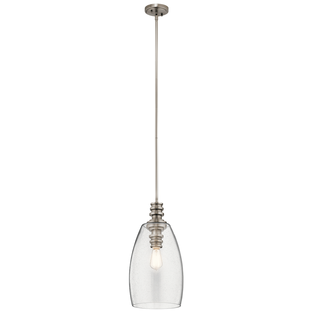 The 1-light pendant in Classic Pewter from the Lakum collection combines a delicately styled glass shade with a spindle socket and head, a look made popular in antique wooden bedposts and table legs. The result is an oversized pendant style that works in variety of decors.