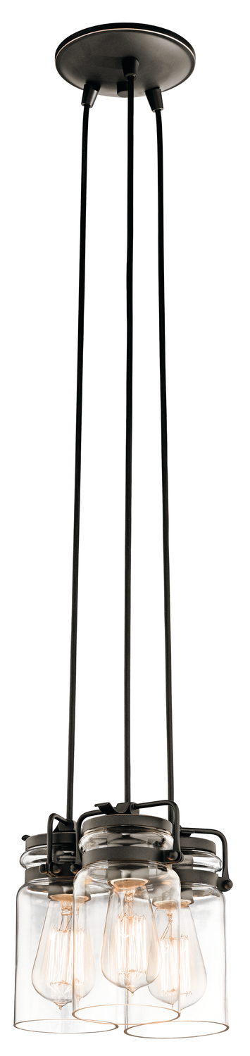 Brinley 7.75" 3 light pendant features a modern vintage look with its Olde Bronze® finish and clear glass. Inspired by mason jars, the Brinley pendant works in several aesthetic environments, including modern vintage and transitional.