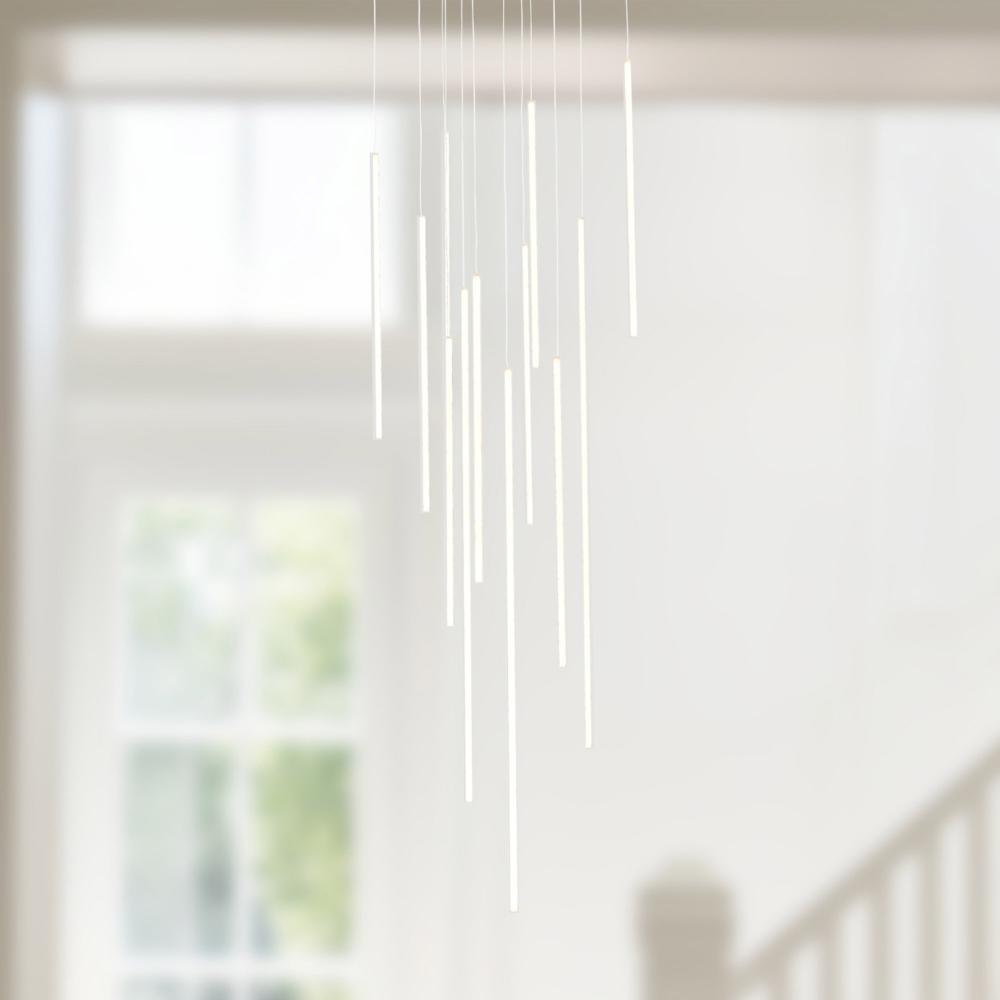 Extruded circular aluminum vertical lamp rods. Flexible silicon rubber diffusers. Lightly textured powder-coat colors. Outward emitting light. Custom options available.