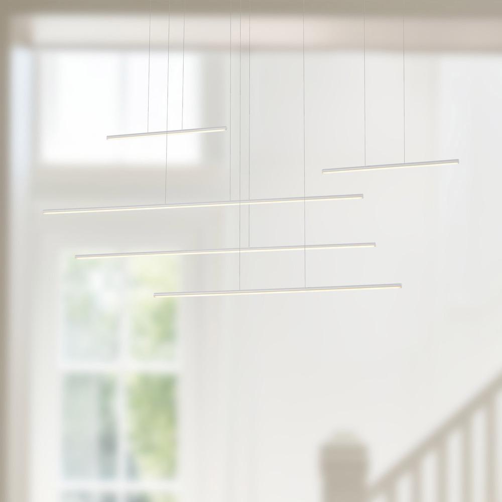 Extruded circular aluminum horizontal lamp rods. Flexible silicon rubber diffusers. Lightly textured powder-coat colors. Outward-emitting light. Custom options available.