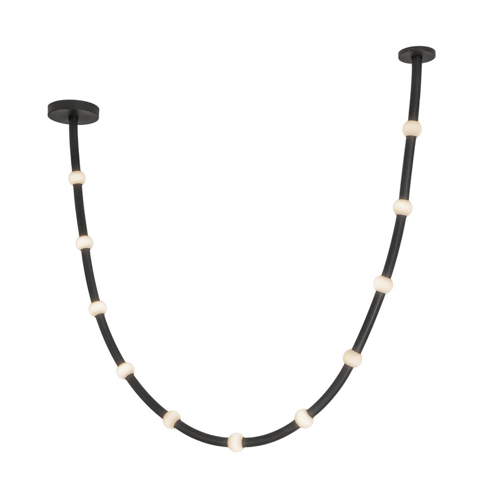 The Corda collection by Branch Creative redefines modern lighting with its adjustable fabric rope adorned with illuminated petite opal glass globes. Perfect for layering in various sizes, it transforms into an eye-catching chandelier suited to any space. Offered with standard junction box covers or remote driver options, Corda delivers versatility and a strikingly unique aesthetic.