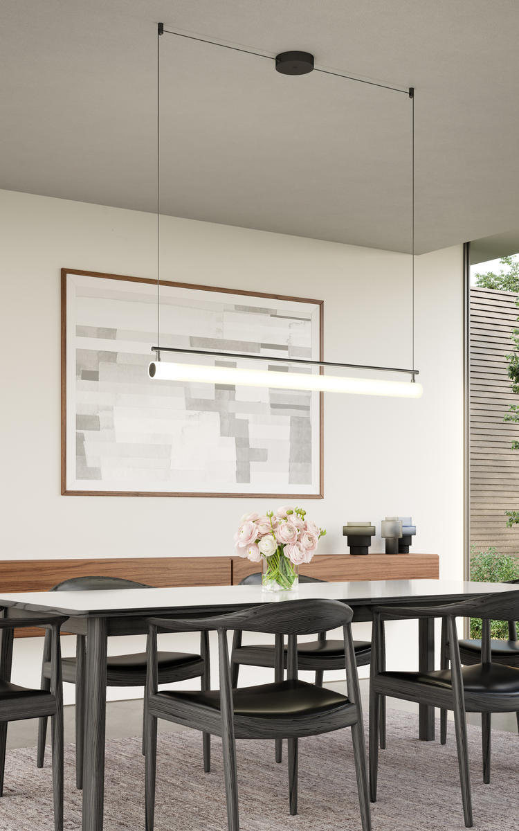 Frosted glass cylinders, available as a single or in multiples, are composed around an aluminum die-cast body, emitting an even 36 Degrees glow of ambient light. The Gramercy standing fixtures feature a touch dimmer and a black finish
