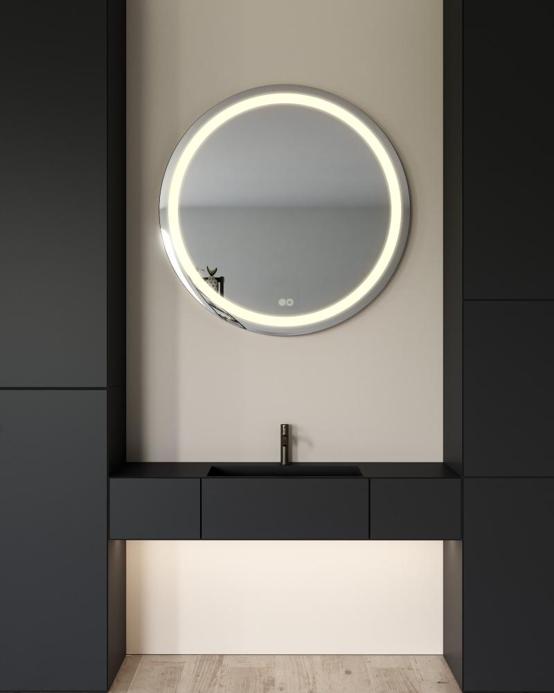 Elevate your daily routine with the Hillmont LED Lighting Mirror, a perfect fusion of contemporary style and practicality. Its circular design adds a touch of sophistication to any space. You can easily set the mood and lighting that suits you best, while the convenient touch-based dimming button ensures effortless control. Illuminate your world with the Hillmont Mirror, designed to enhance your morning routine and elevate your makeup game.