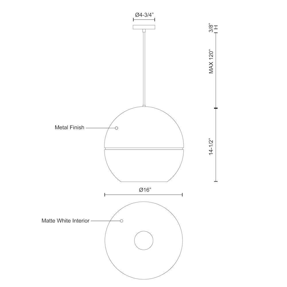 Single-lamp pendant with split spherical aluminum shade showcasing powder-coated finishes against a matte white interior. Exterior shade colors are gray, white or black. Suspended by cloth cable. Available in two sizes.