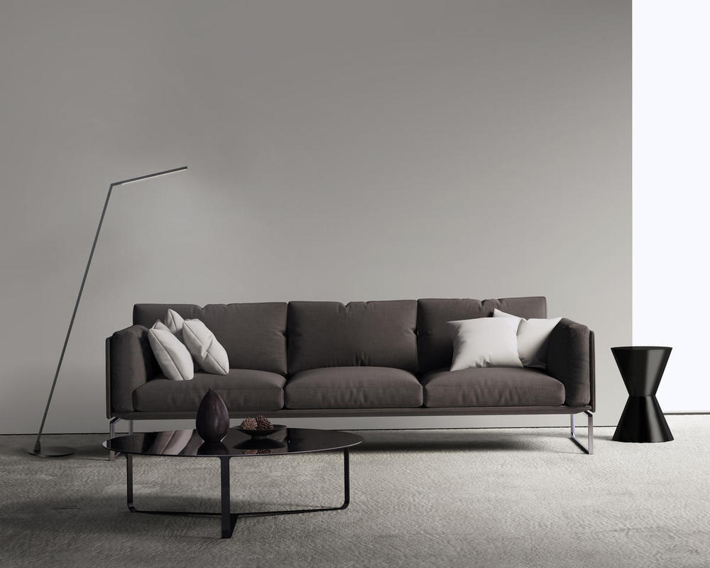 A thin angular line forms the gesture synonymous with the MITER floor and table lamp series. Employed within the top arm of the diminutive square profile is a linear LED source capped by an inset opal diffuser providing uniform soft illumination. The precisely machined aluminum body conceals further functionality with simple power connectors to enable easy assembly and added rotational adjustment. A handsome circular dimmer adorns the structure. Available in multiple finishes.