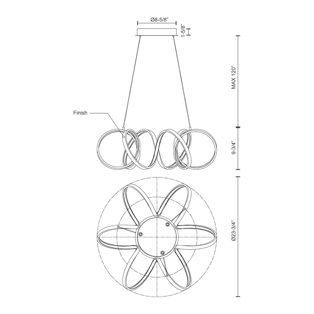 A looping radiant line casts light across space in a continuous helical path. The Synergy series is characterized by the rolled rectangular extrusion, which emits soft light through the silicon opal lens. Configured in both linear and ring arrangements, the arcing aluminum allows the curated finishes to be visible at every angle.