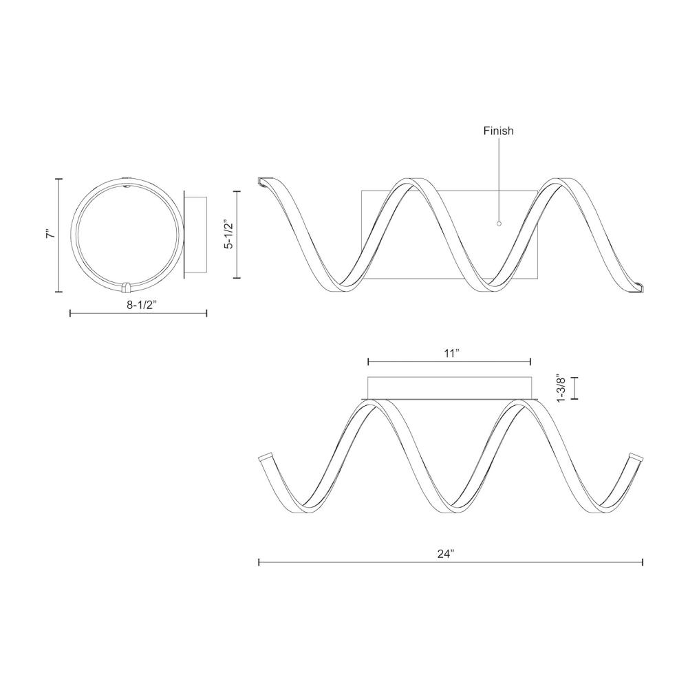 A looping radiant line casts light across space in a continuous helical path. The Synergy series is characterized by the rolled rectangular extrusion, which emits soft light through the silicon opal lens. Configured in both linear and ring arrangements, the arcing aluminum allows the curated finishes to be visible at every angle.