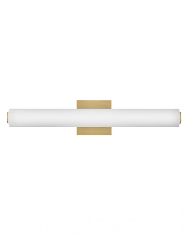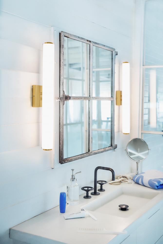 Marti’s minimalism delivers supreme versatility. This LED design is a modern marvel, making itself right at home in powder rooms, primary bathrooms or even hallways, casting a happy glow through its etched opal glass.