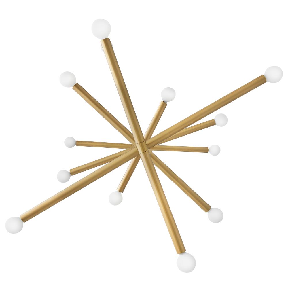 Millie tells a linear love story with elongated cylindrical rods extending outwards, creating a sleek statement that commands attention. This design establishes immediate style credibility thanks to its iconic midcentury modern origin, ensuring visual intrigue in either Black or Lacquered Brass finishes. to complement Millie's chic style, we recommend G16.5 bulbs.
