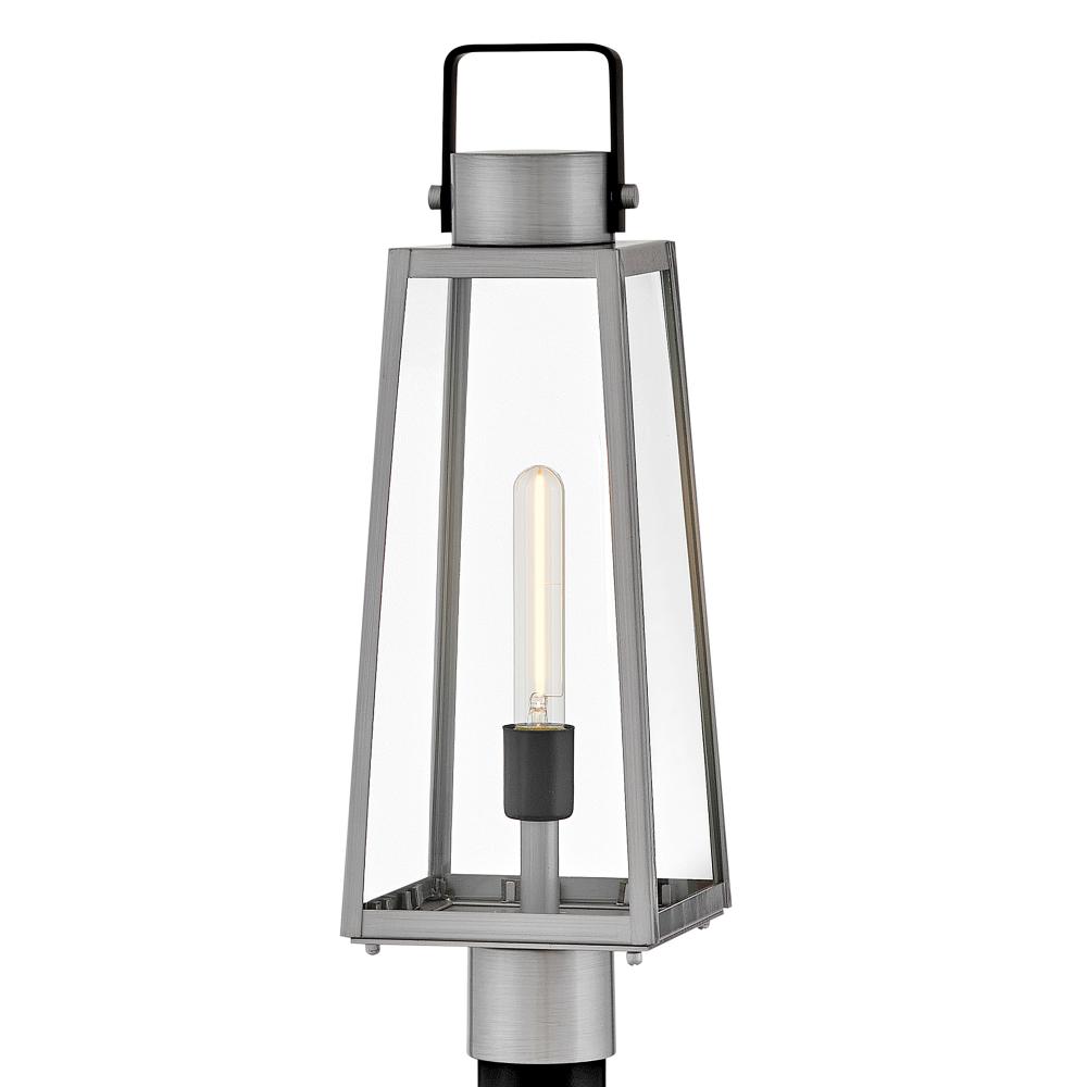 Hype up your alfresco area with the Hugh outdoor lantern and its sleek transitional style. The trapezoidal design features bold, over-scaled clear glass panes framed by carefully curated two-tone metal finish options to inject a modern edge. Choose from classic Antique Brushed Aluminum with a matte Black accent or a rich Black with a warm Burnished Bronze accent. Pro tip: we recommend a tubular vintage filament bulb to make Hugh pop on porches and patios or amp up any exterior space.