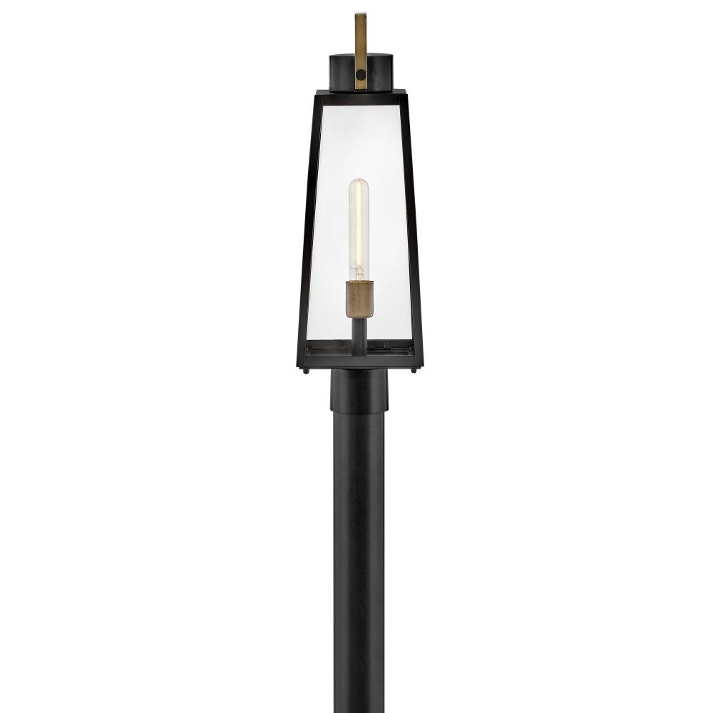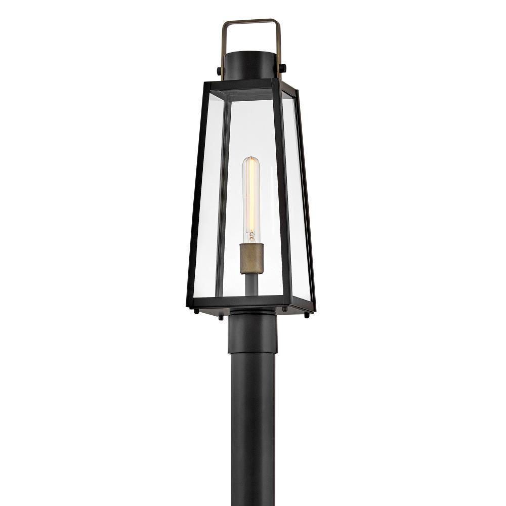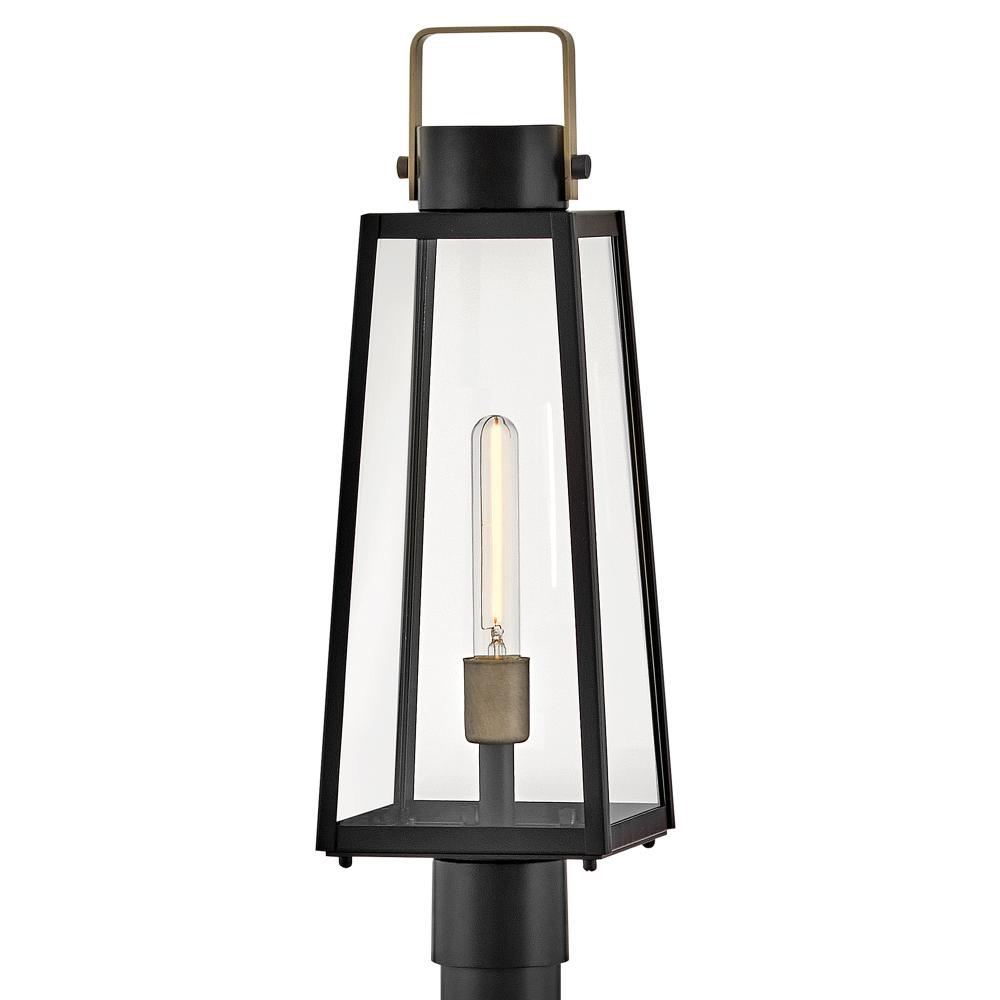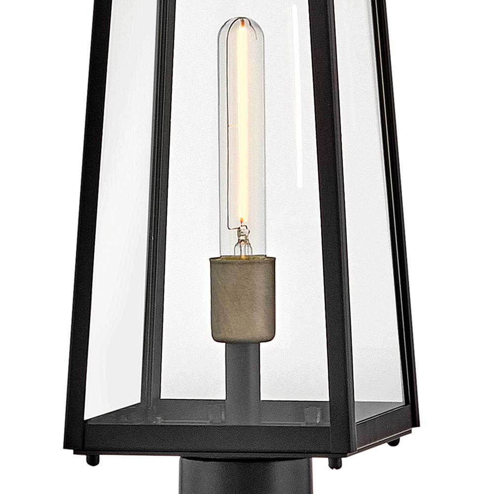 Hype up your alfresco area with the Hugh outdoor lantern and its sleek transitional style. The trapezoidal design features bold, over-scaled clear glass panes framed by carefully curated two-tone metal finish options to inject a modern edge. Choose from classic Antique Brushed Aluminum with a matte Black accent or a rich Black with a warm Burnished Bronze accent. Pro tip: we recommend a tubular vintage filament bulb to make Hugh pop on porches and patios or amp up any exterior space.