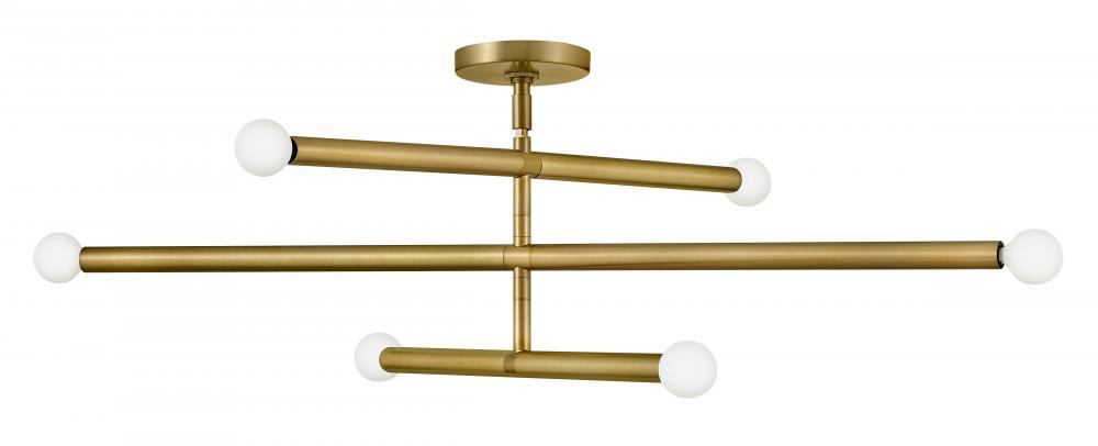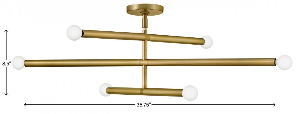 Millie tells a linear love story with elongated cylindrical rods extending outwards, creating a sleek statement that commands attention. This design establishes immediate style credibility thanks to its iconic midcentury modern origin, ensuring visual intrigue in either Black or Lacquered Brass finishes. To complement Millie's chic style, we recommend G16.5 bulbs.