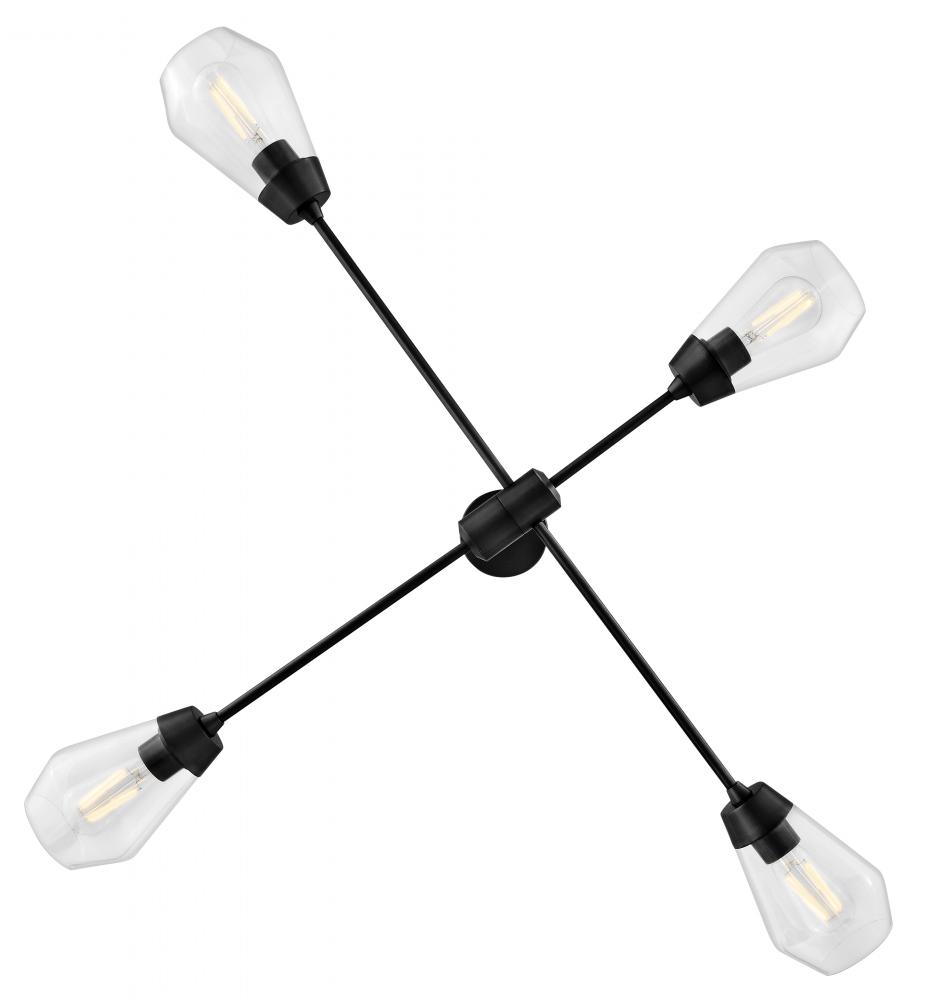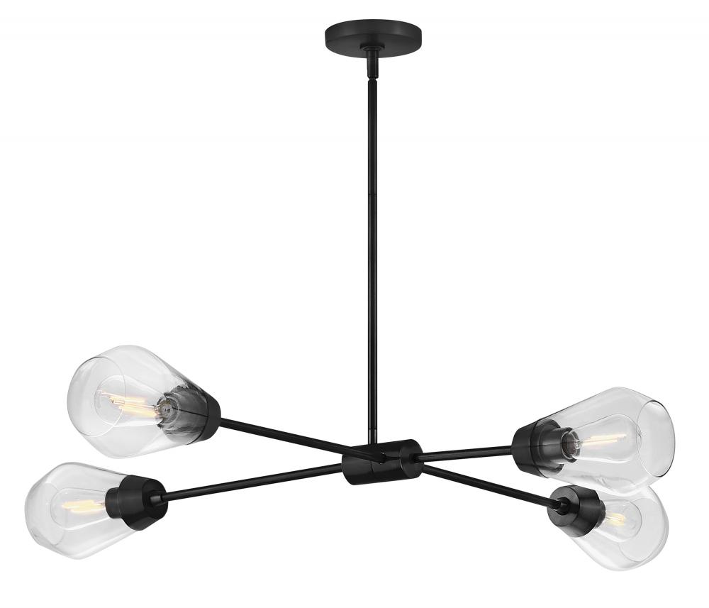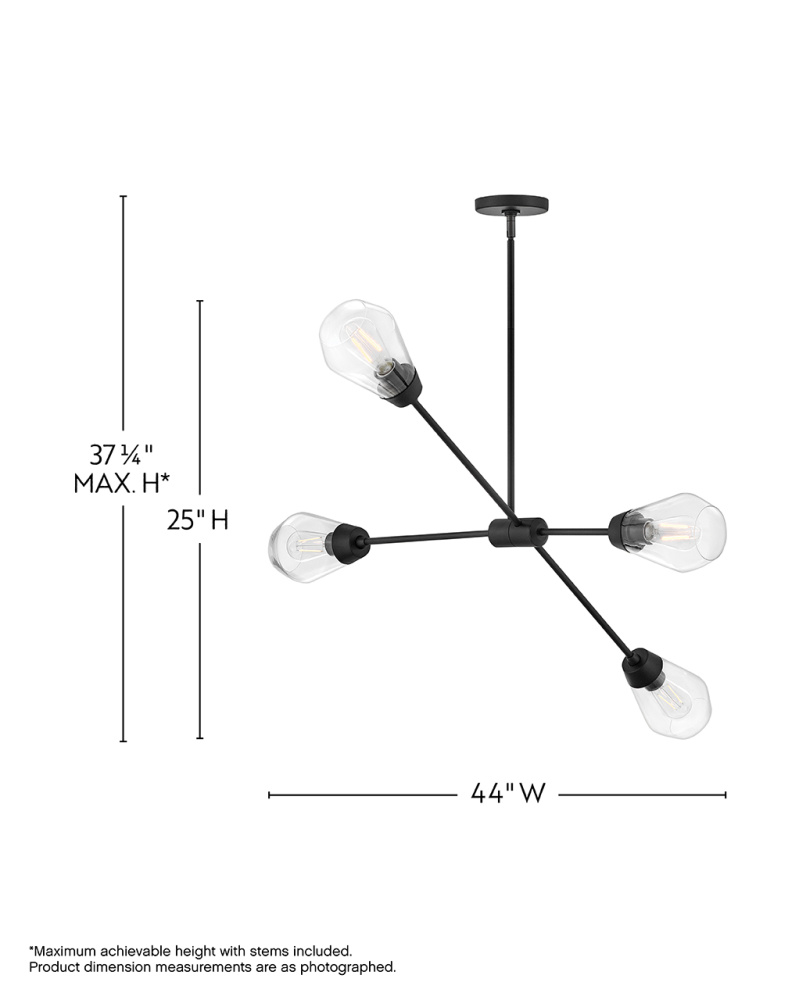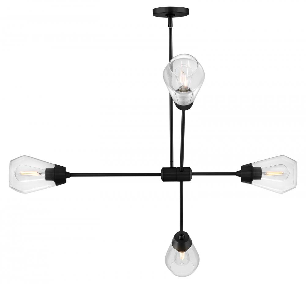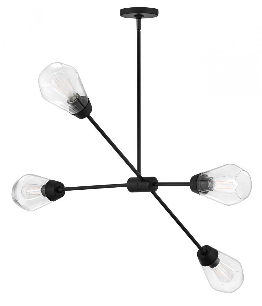 A geometric gem, Livie cleverly mixes sleek lines with an angular shape for a contemporary cool look that makes itself at home anywhere. Clear glass unites with spun metal elements and articulating arms to give Livie a modern, mobile chandelier look.