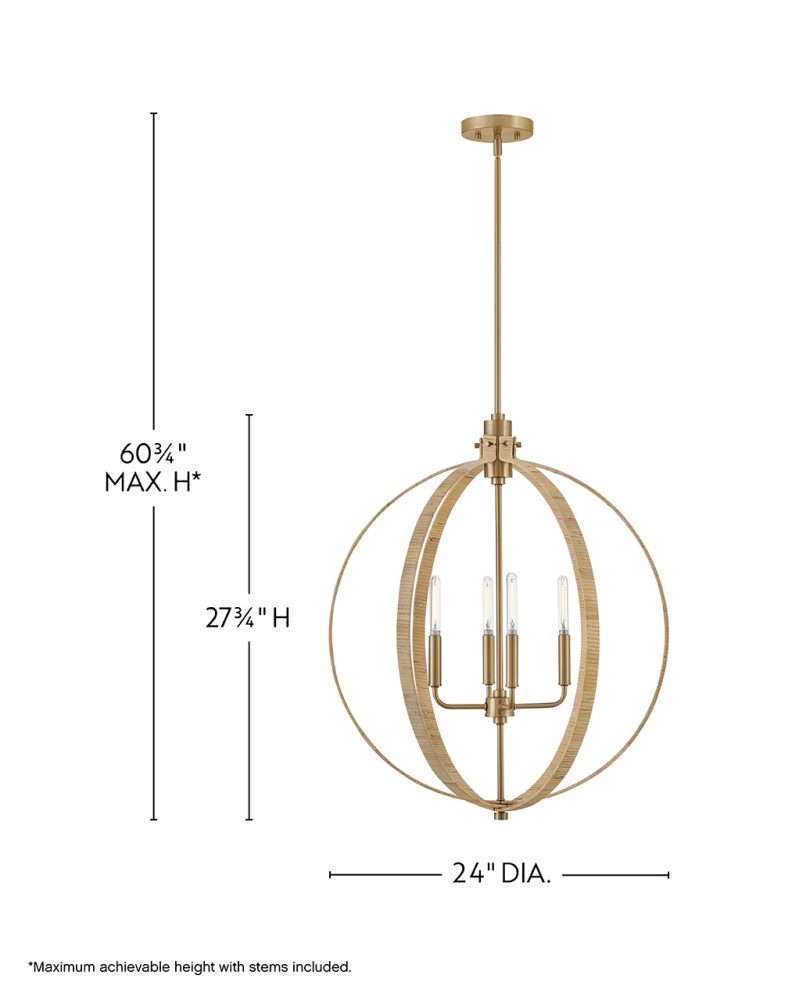 Fallon confidently embraces a fresh, organic style as brilliant lights peek out from behind a rattan-wrapped open frame. Perfect for the coastal chic aesthetic, the mixed materials and striking silhouette command attention with irresistible appeal.