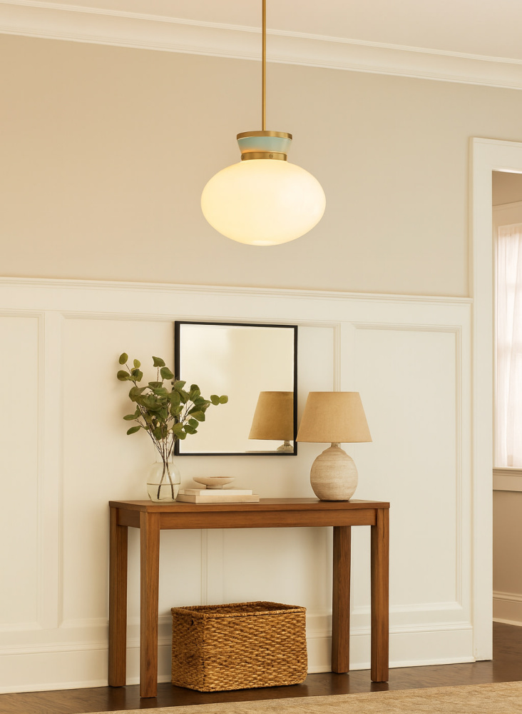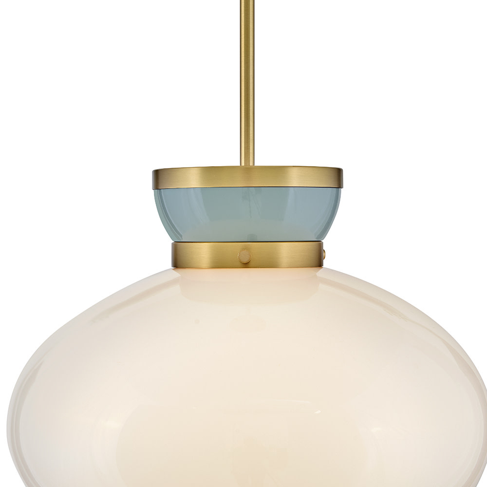 A petite beauty that packs a big punch, Lucy’s curved lines and captivating color combinations are like a whirlwind romance with classic style. The schoolhouse modern cased opal glass shade with charming accent finishes adds a touch of softness to your space.