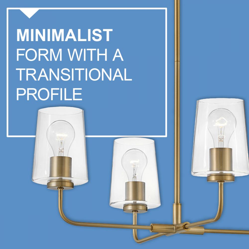 Let’s get down to business. Kline’s minimalist form doesn’t need to make a fuss, thanks to its pared down but supremely stylish transitional profile. Keeping things architectural, Kline’s super slim elongated arms unite with sleek glass shades in finishes that add just the right edge.