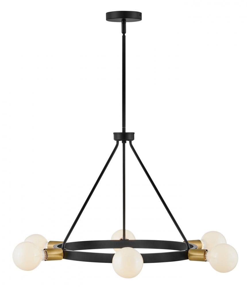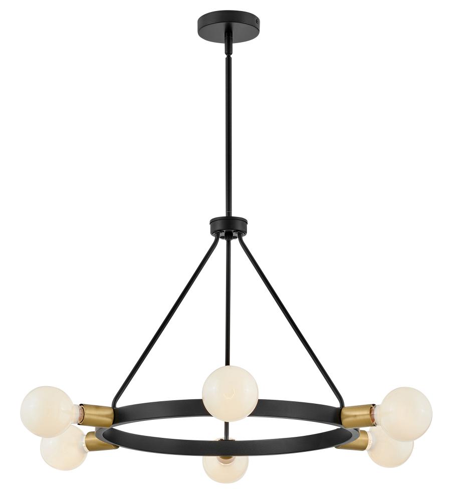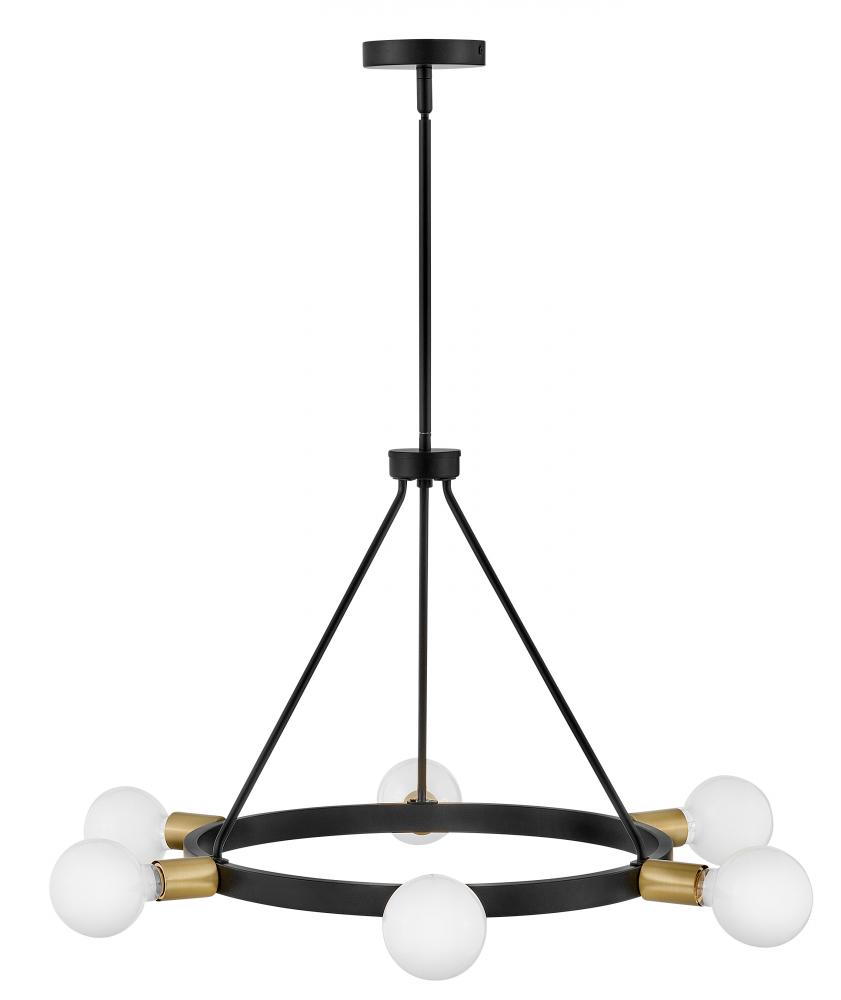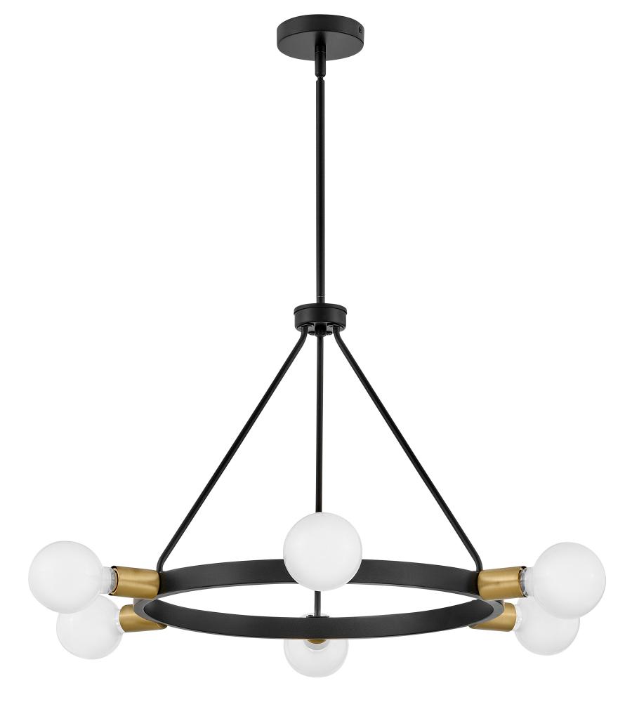A mid-century modern vibe with a glimpse of Hollywood glam? Yes, please. Orla brings the dimensional interest with multiple plays on circles and globes. The streamlined profile is simple, with each individual element contributing to the overall silhouette in a big way. Available in Lacquered Brass or Black with Lacquered Brass accents, Orla makes a prominent style statement. G-style bulbs recommended.
