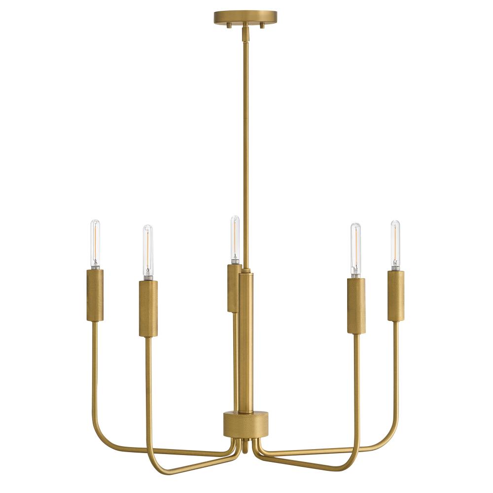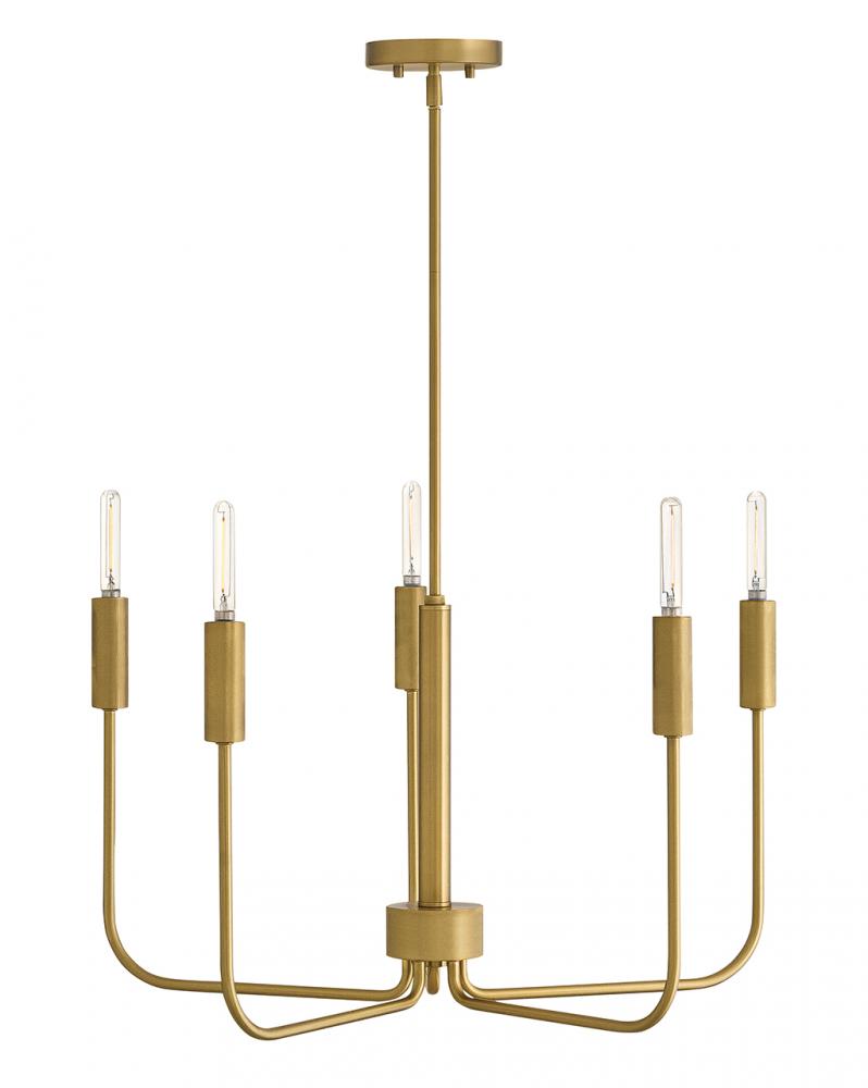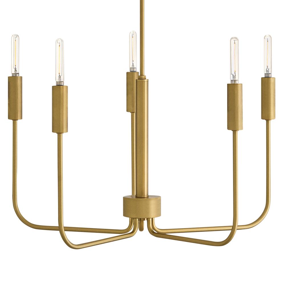 Austen’s slim, exaggerated design creates a chic transitional shape accentuated by knurled candle sleeves and stem details. Black and Lacquered Brass finishes are complemented by exposed bulbs. Experiment with different lamps to find a look that’s perfect for your space.