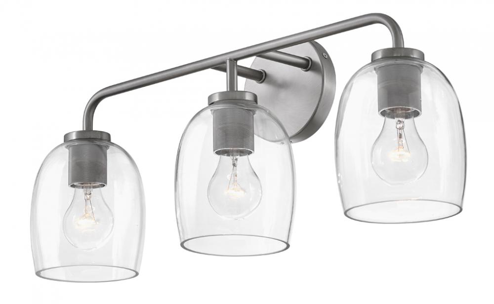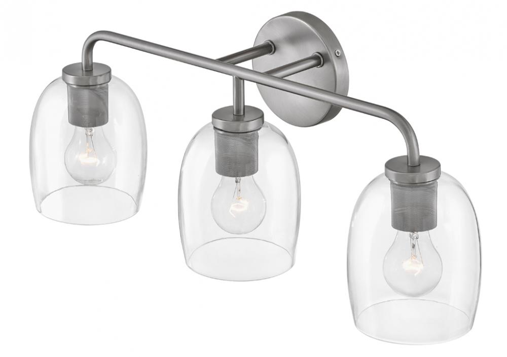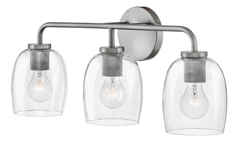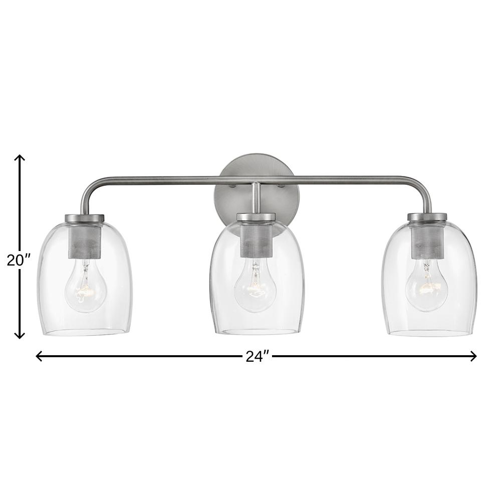Percy’s transitional style rings loud and clear with clever bell-shaped clear glass designed to highlight its distinctive industrial detailing, all while serving up ample illumination. Easily installed up or down, Percy transforms any bathroom into one of the most stylish spots in the house. A collection of 3 versatile finish options, Antique Nickel, Black and Lacquered Brass, lets you pick the perfect Percy for powder rooms and primary baths alike.