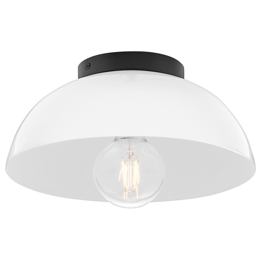 Stu’s jaunty flush-mount profile is accentuated by a petite shade made from cased opal glass or metal in fashion-forward finishes.