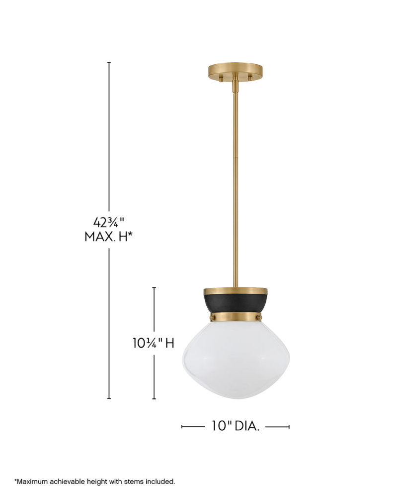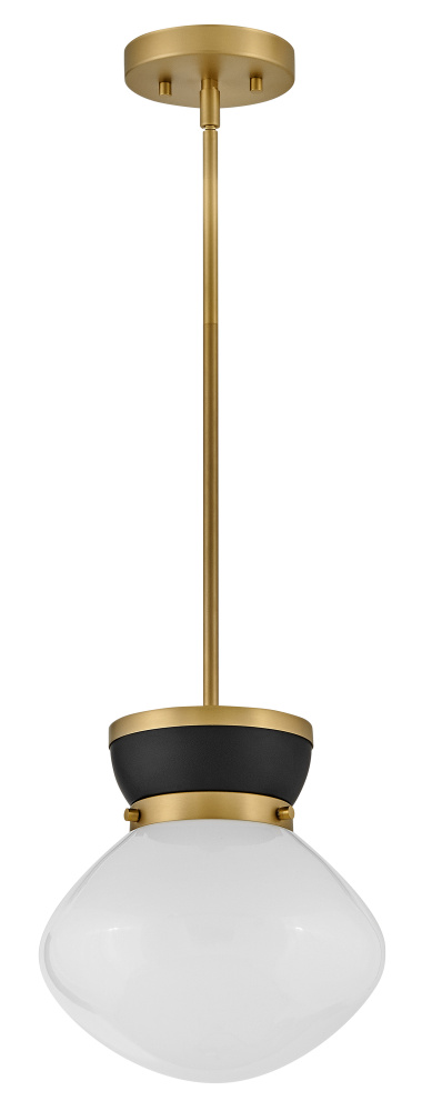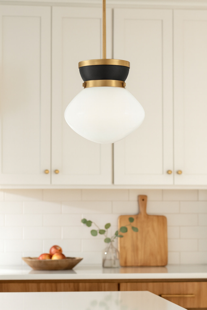 Lucy is a petite beauty that packs a big punch. The curved lines and captivating color combinations are like a whirlwind romance with classic style. The schoolhouse modern shade and bands of Lacquered Brass finish off the timeless love story with a softness that fits in any space or place.