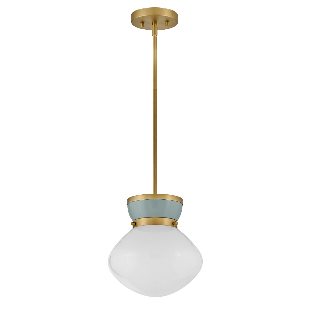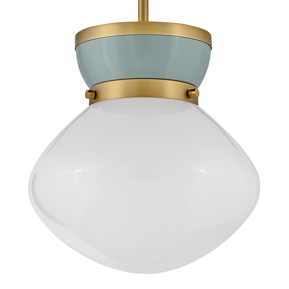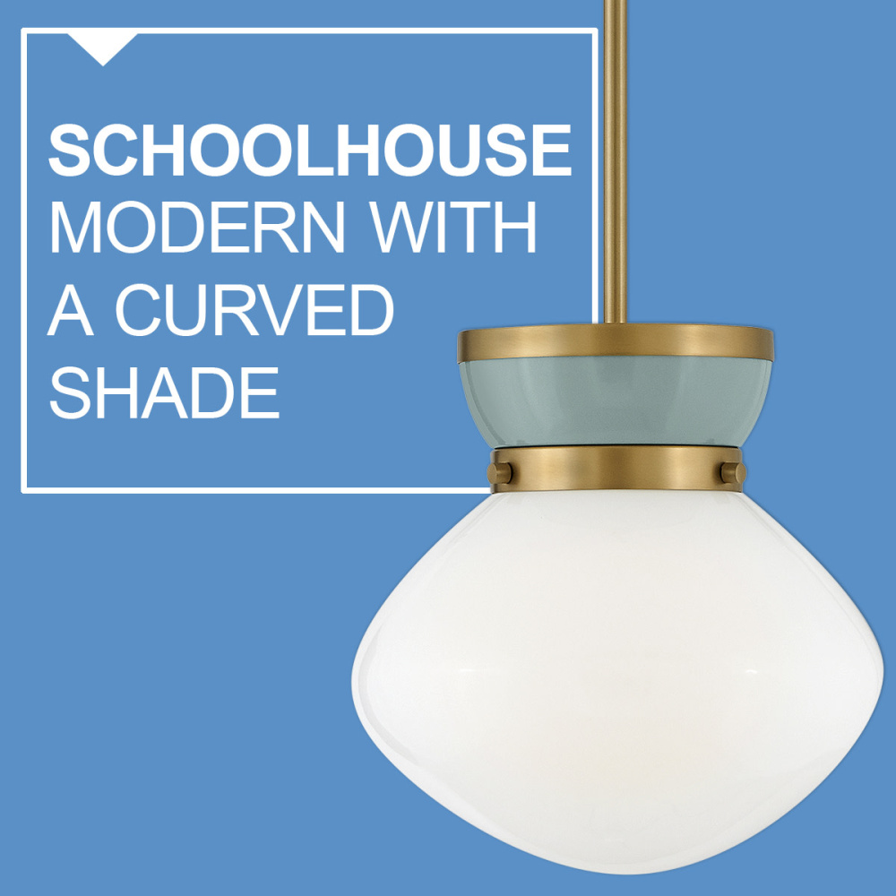 Lucy is a petite beauty that packs a big punch. The curved lines and captivating color combinations are like a whirlwind romance with classic style. The schoolhouse modern shade and bands of Lacquered Brass finish off the timeless love story with a softness that fits in any space or place.