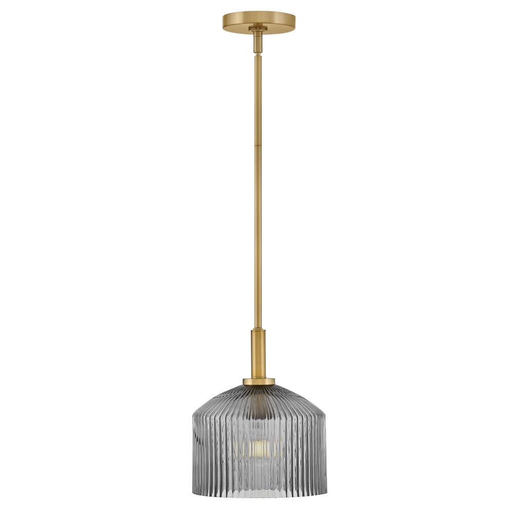 A chic throwback to vintage glassware and retro colors, Lisette’s ribbed shade makes a cool statement in Rose, Smoked, or Clear glass. The subtle texture casts enchanting refractions throughout your space while a classic brass finish blends perfectly into any décor style.