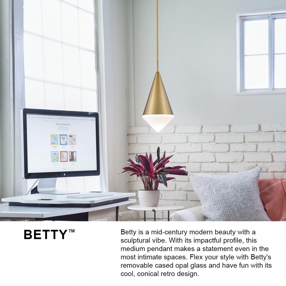 Betty is a mid-century modern beauty with a sculptural vibe. Its impactful profile makes a statement even in the most intimate spaces. Flex your style with Betty’s removable cased opal glass and have fun with its cool, conical retro design.
