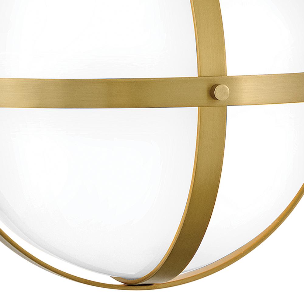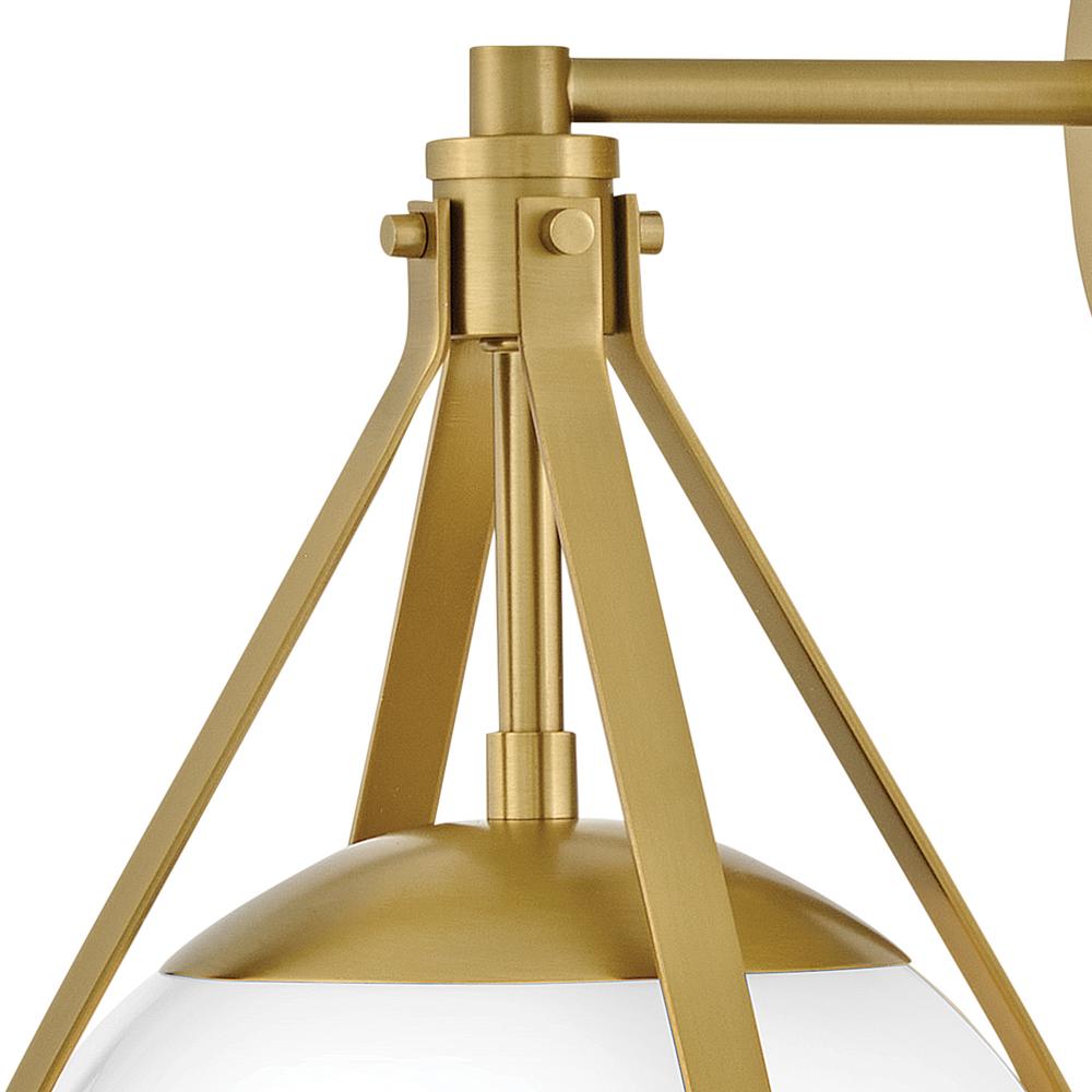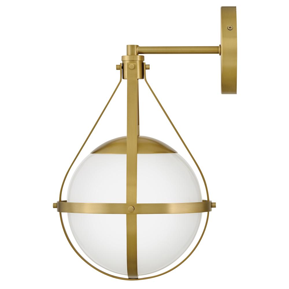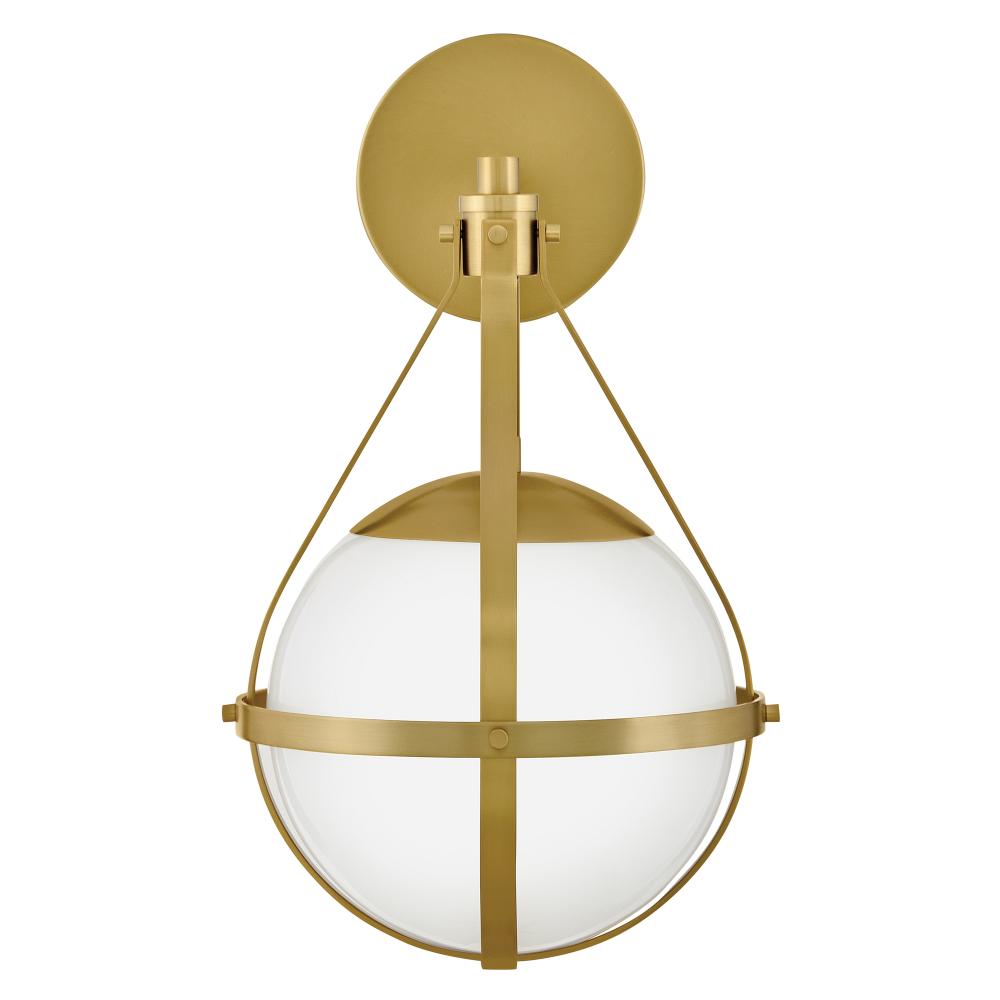 A retro, modern stunner, Colby’s cased opal glass globe, accentuated by a cage-style frame, creates unexpected glamour in any space.