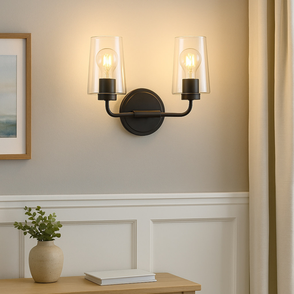 Let's get down to business. Kline's minimalist form doesn't need to make a fuss, thanks to its pared-down but supremely stylish transitional profile. Keeping things architectural, Kline's super slim elongated arms unite with sleek glass shades in finishes that add just the right edge.