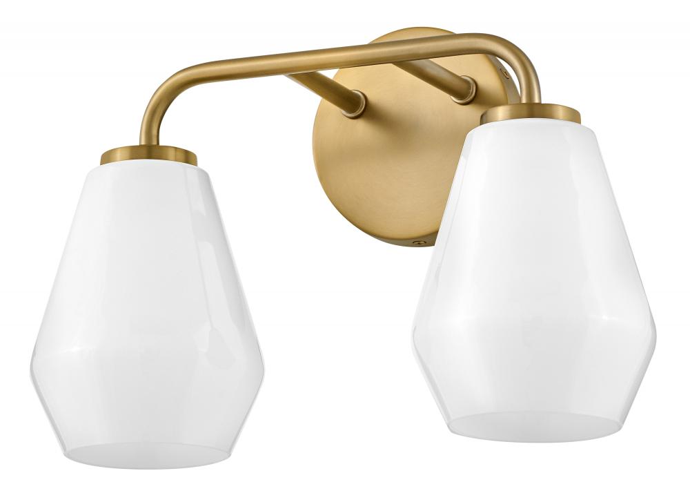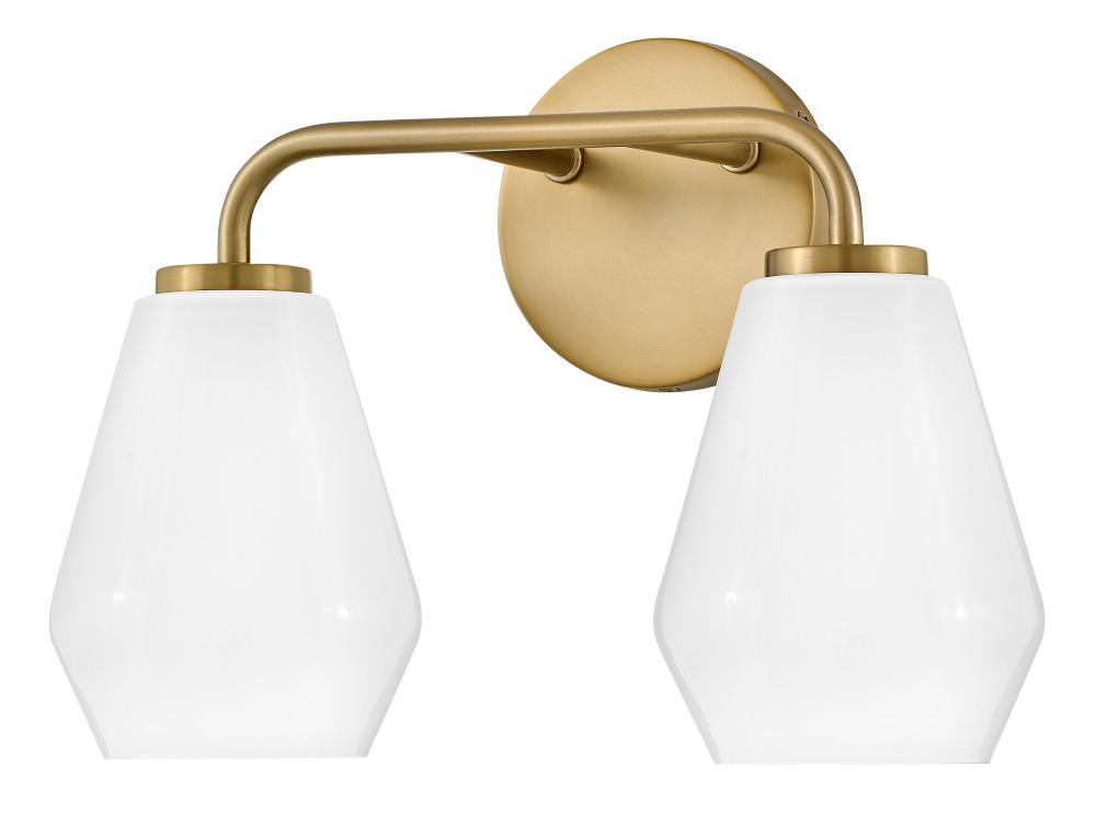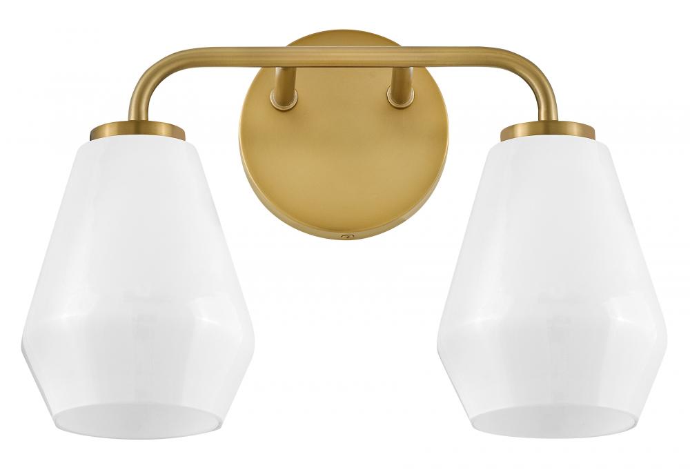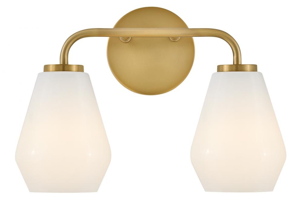 Subtle geometric elements find harmony within the sleek, curved lines of Gio. The cased opal glass covers the space in functional, diffused light while providing a nice contrast to the bold variety of finish colors. Gio’s transitional glam design and clean profile add to any bath décor.