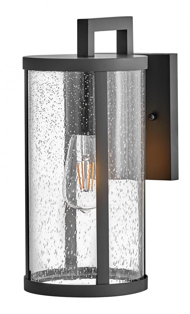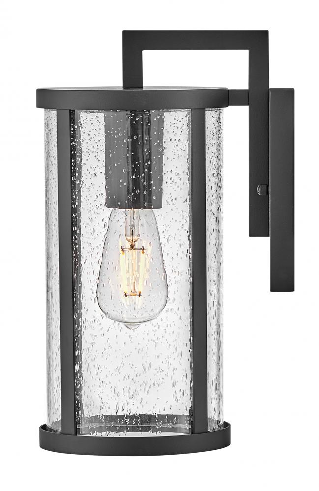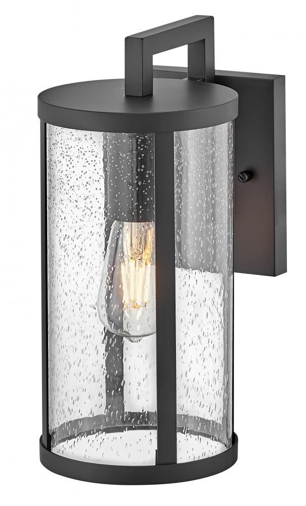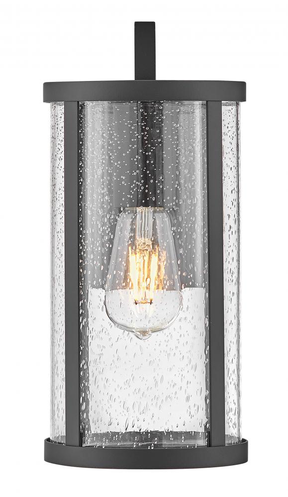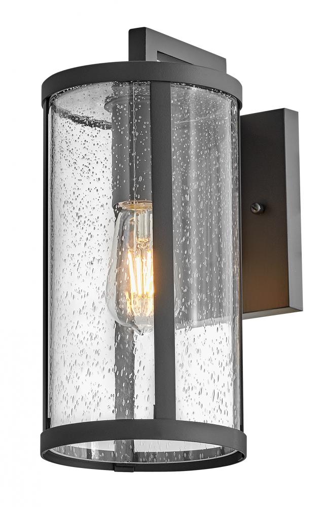 Alfie boosts curb appeal with effortless style. This transitional wall mount lantern features an easy-on-the-eyes cylindrical profile, bold Black metal frame and sizable clear seedy glass finessed to flatter any exterior. Pro tip: we recommend vintage filament bulbs to make Alfie really shine.