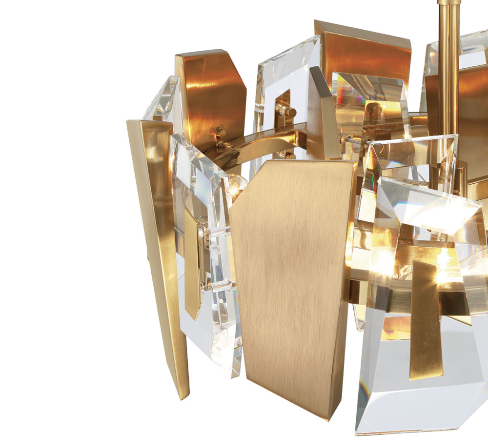 Exquisite hand-pulled crystal elements bring a unique, artisanal touch to the fixture, with each piece crafted with meticulous care to create a one-of-a-kind look.