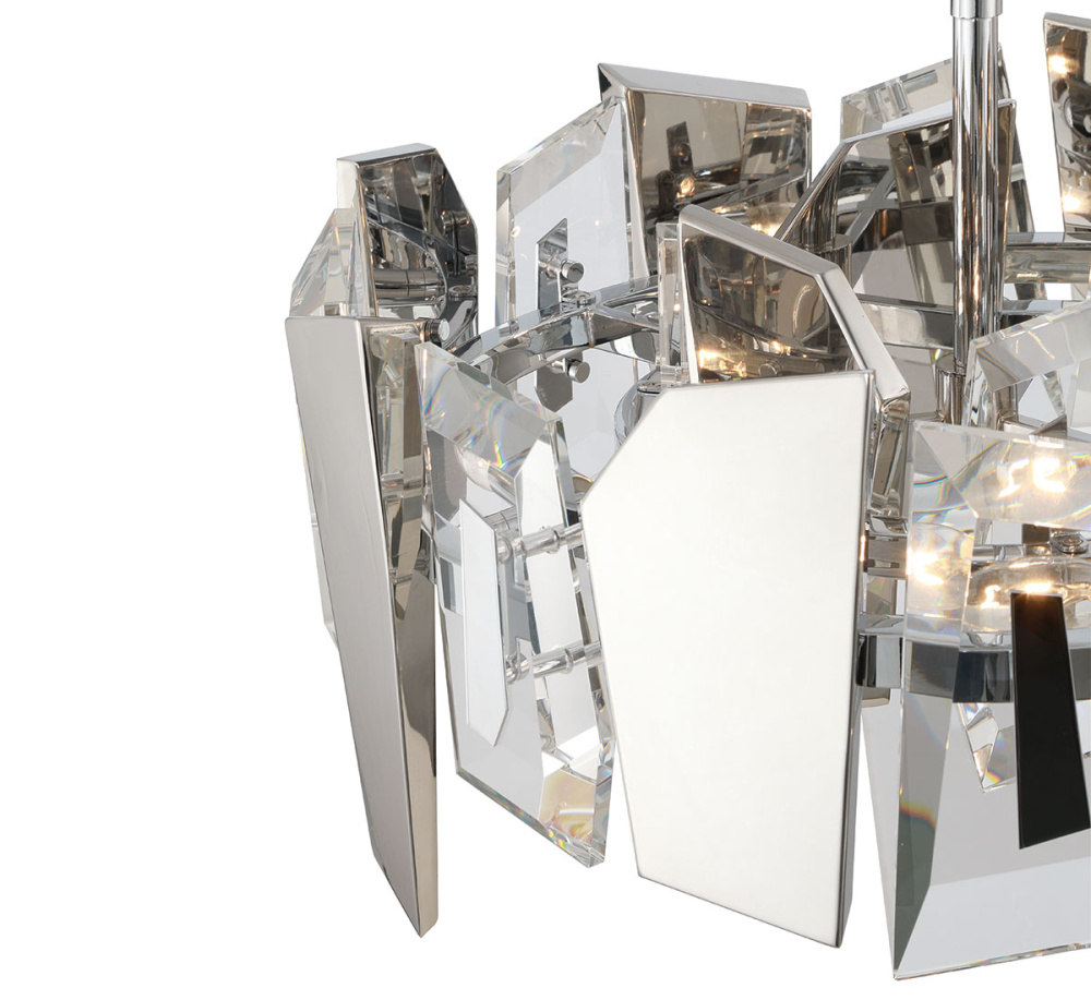 Mirrored finish of the stainless steel enhances the overall design, reflecting light and creating a striking contrast with the crystal, adding depth and brilliance to the piece.