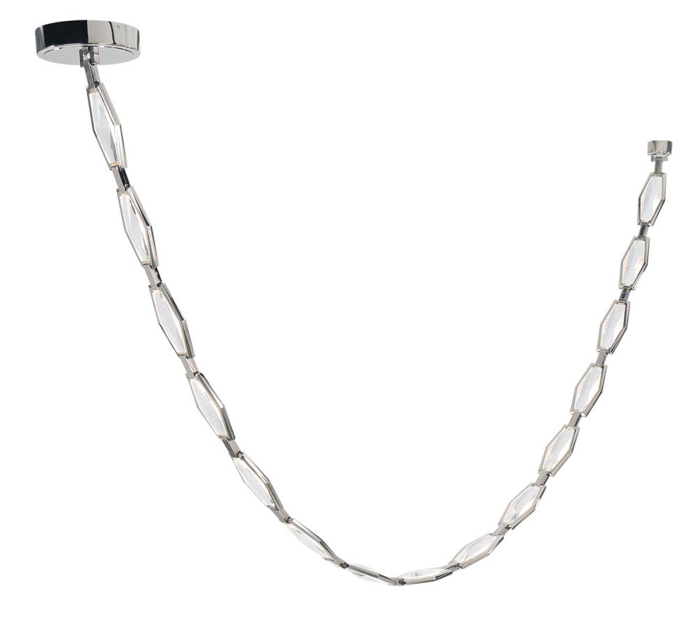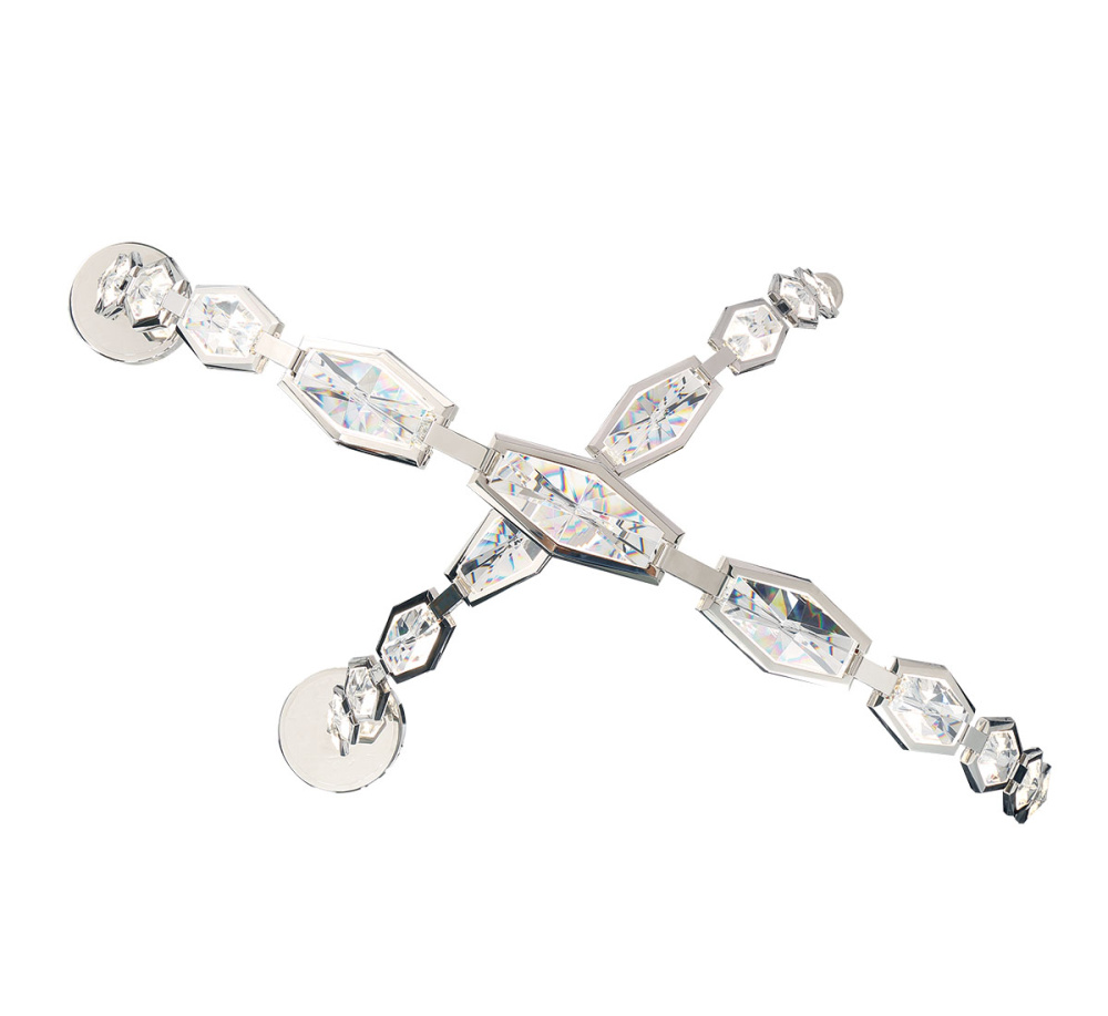 This fixture features a series of sweeping, arms made from linked, faceted crystal elements that create a shimmering, sculptural presence.