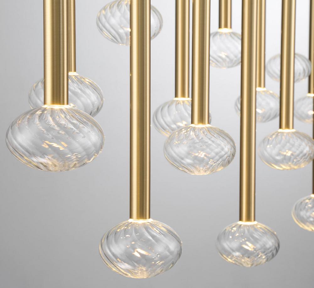 Unique and sophisticated look with handcrafted etched glass spheres and metallic tubes