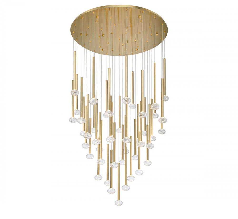 Unique and sophisticated look with handcrafted etched glass spheres and metallic tubes