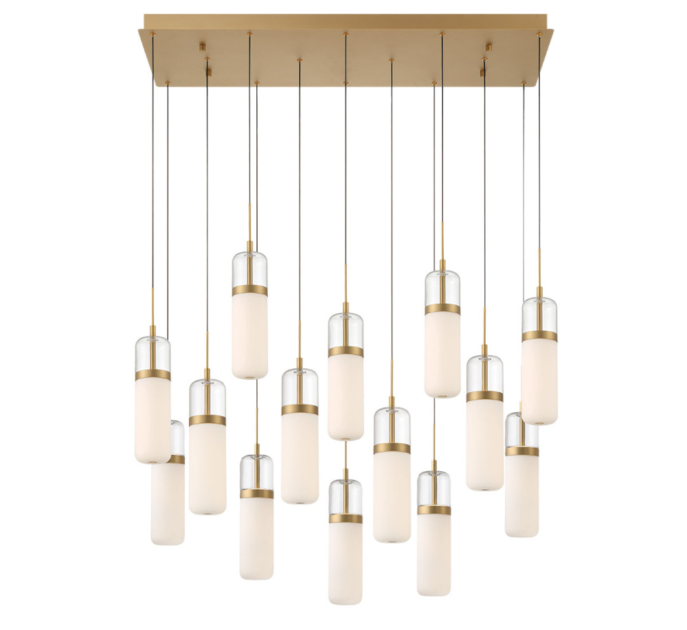Verona, 14 Light Rectangular LED Chandelier, Painted Antique Brass