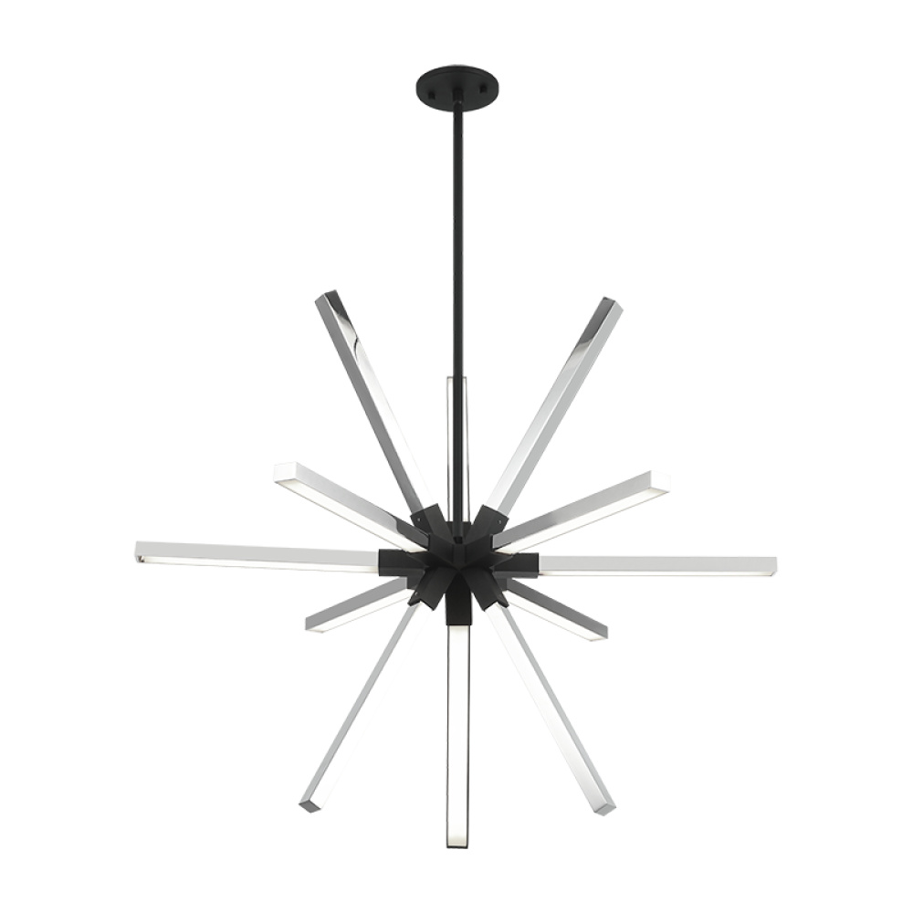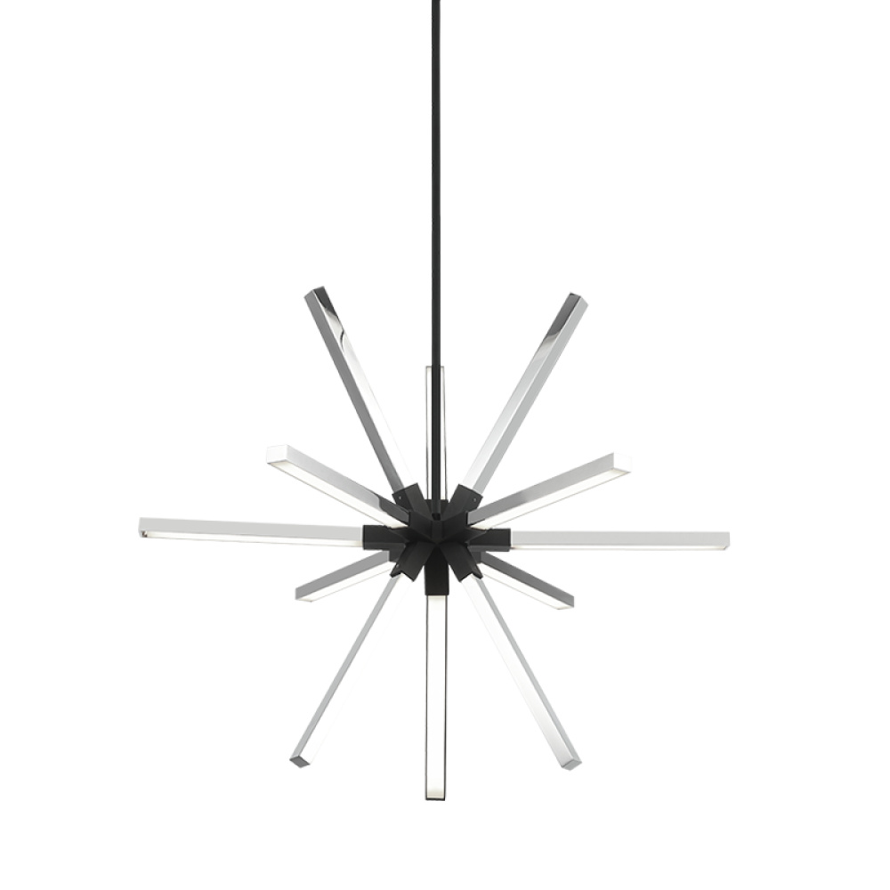 Asterisk A sleek and contemporary design.This unique pendant features an array of square spikes creating a minimalist starburst effect. It includes integrated LED lamping with acrylic shades to illuminate your modern space. Available in 4 configurations and 2 finish combinations of mixed metal.