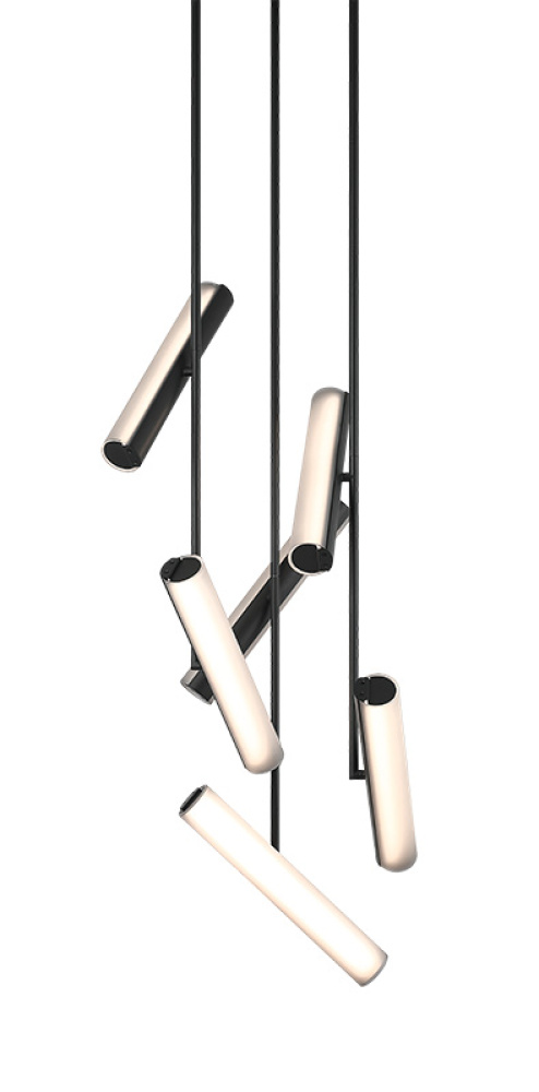Axis Illuminate your space with sculptural elegance. The Axis is a modern multi-pendant chandelier that transforms lighting into art. Sleek cylindrical elements are suspended at varying angles, creating a dynamic architectural presence. Each tube emits a softly diffused warm glow that enhances any environment. The collection is offered in Champagne Gold with white frosted glass or Matte Black with smoke frosted glass, allowing you to choose the aesthetic that best complements your space. Features a 5CCT switch on the LED module to adjust the 5 selectable colour temperature