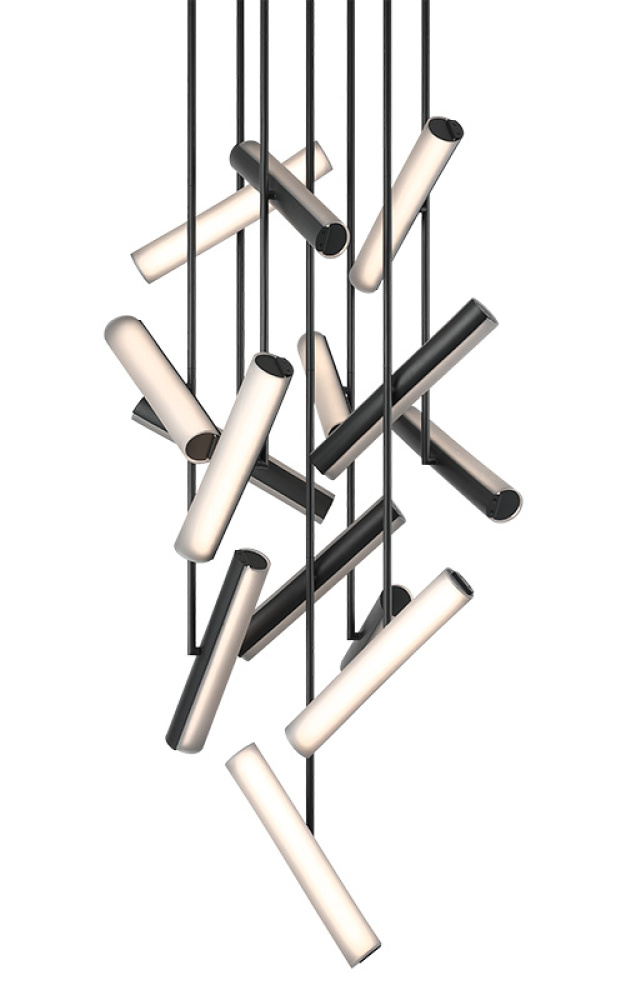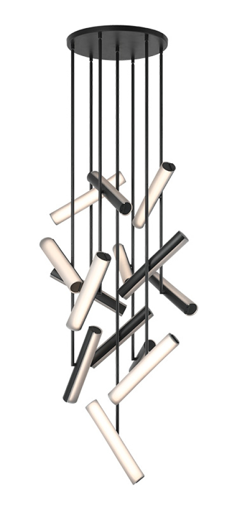 Axis Illuminate your space with sculptural elegance. The Axis is a modern multi-pendant chandelier that transforms lighting into art. Sleek cylindrical elements are suspended at varying angles, creating a dynamic architectural presence. Each tube emits a softly diffused warm glow that enhances any environment. The collection is offered in Champagne Gold with white frosted glass or Matte Black with smoke frosted glass, allowing you to choose the aesthetic that best complements your space. Features a 5CCT switch on the LED module to adjust the 5 selectable colour temperature